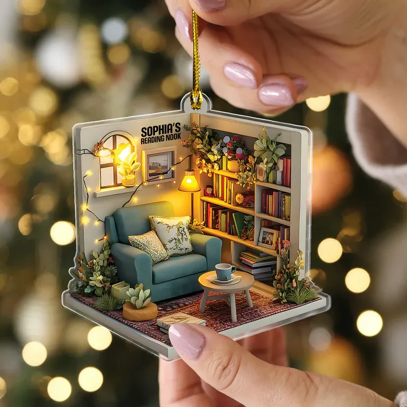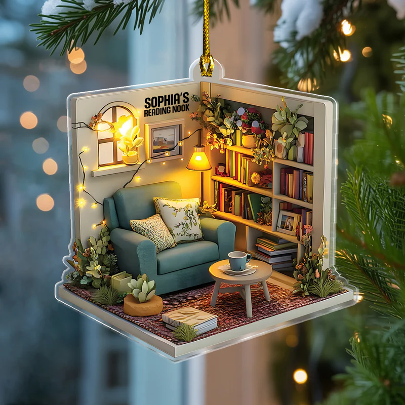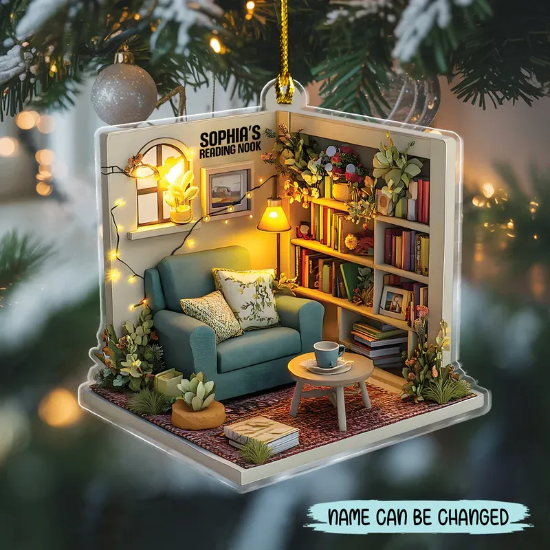 2D FLAT Dreamy Cozy Reading Nook - Personalized Reading Acrylic Ornament, Reading Room Christmas Ornament, Bookworm Gift
