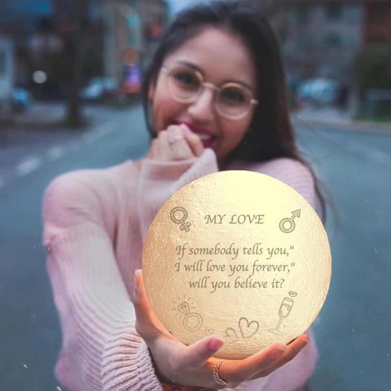 Anniversary Gift Engraved Moon Lamp - Touch Two Colors (15-20cm)