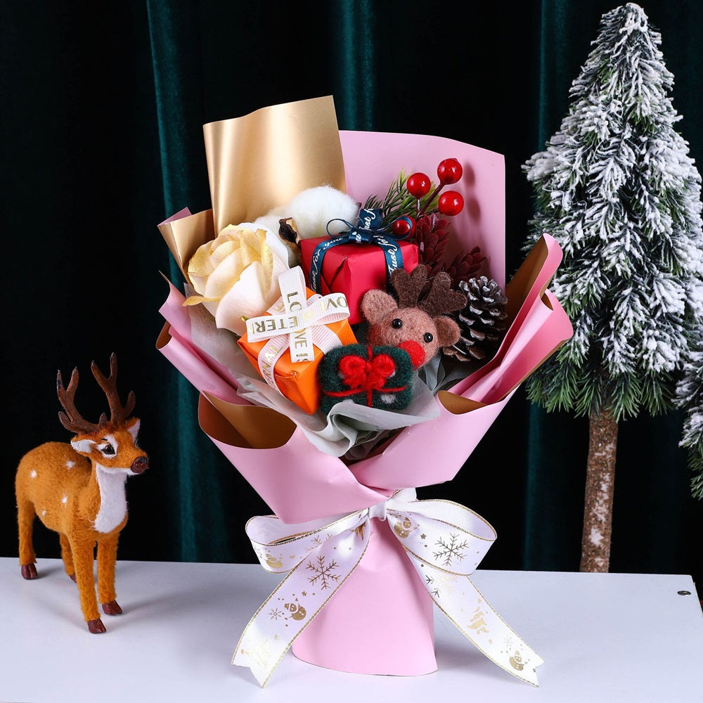 The Christmas soap bouquet is not only beautiful but also practical. Pick off a petal and use it to wash your hands. If it accidentally drops into your eyes, please rinse with plenty of water.