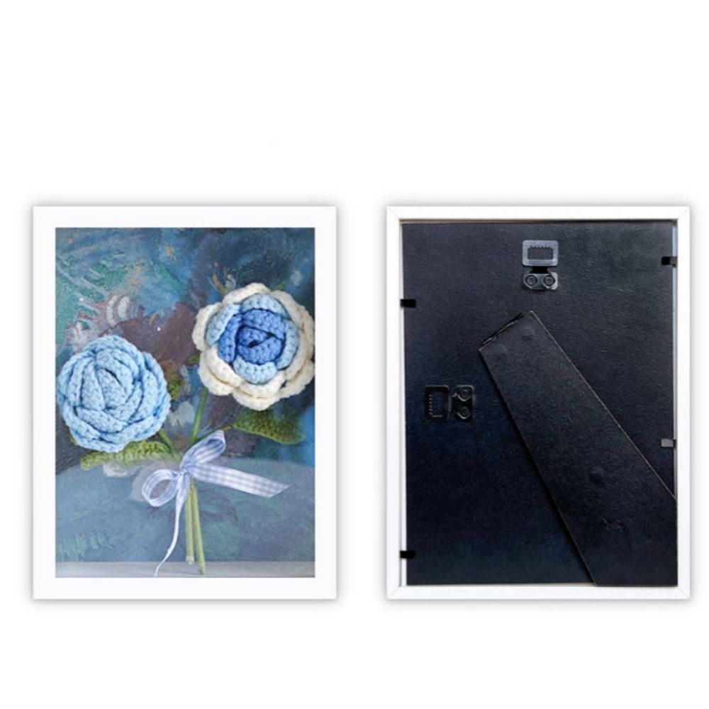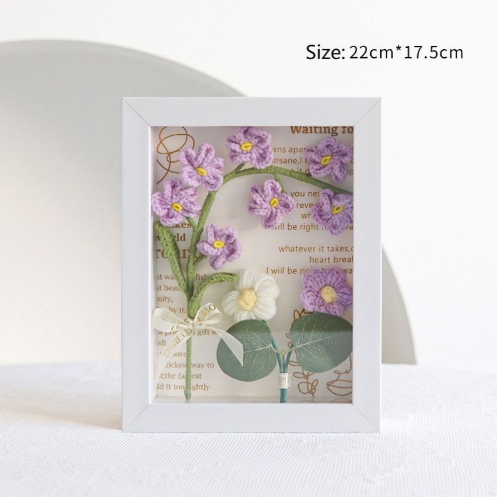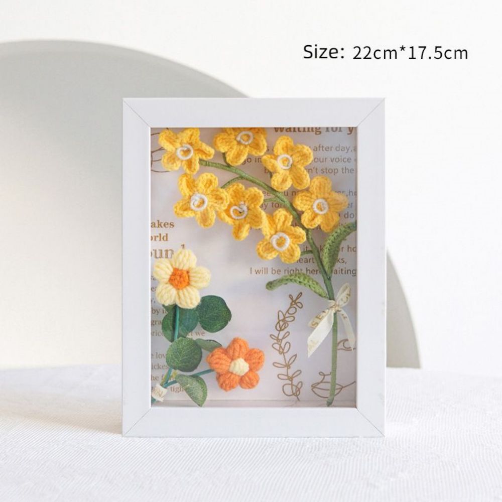 Crochet Bouquets Photo Frame Handmade Knitted Flower Shadowbox Frame Desktop Decoration