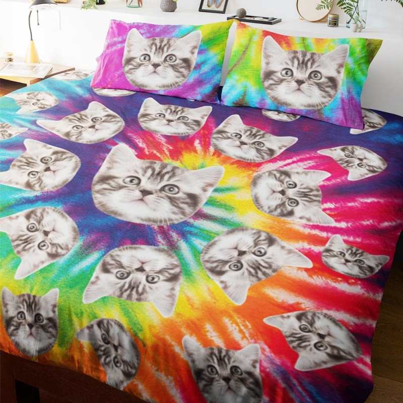 Custom Tie Dye Double Bedding Set with Duvet Cover Pillowslip Set Funny Bedding Gift