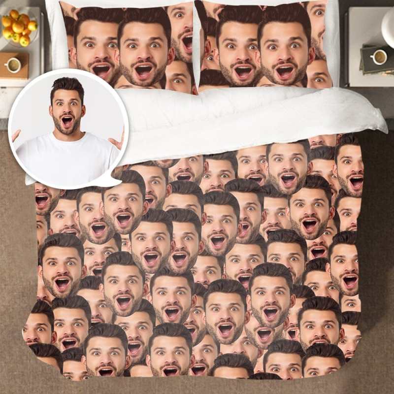 Custom Face Funny Bedding Set with Duvet Cover Pillowslip Set Double Bedding Gift