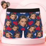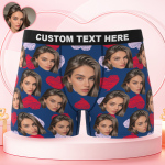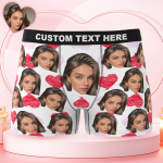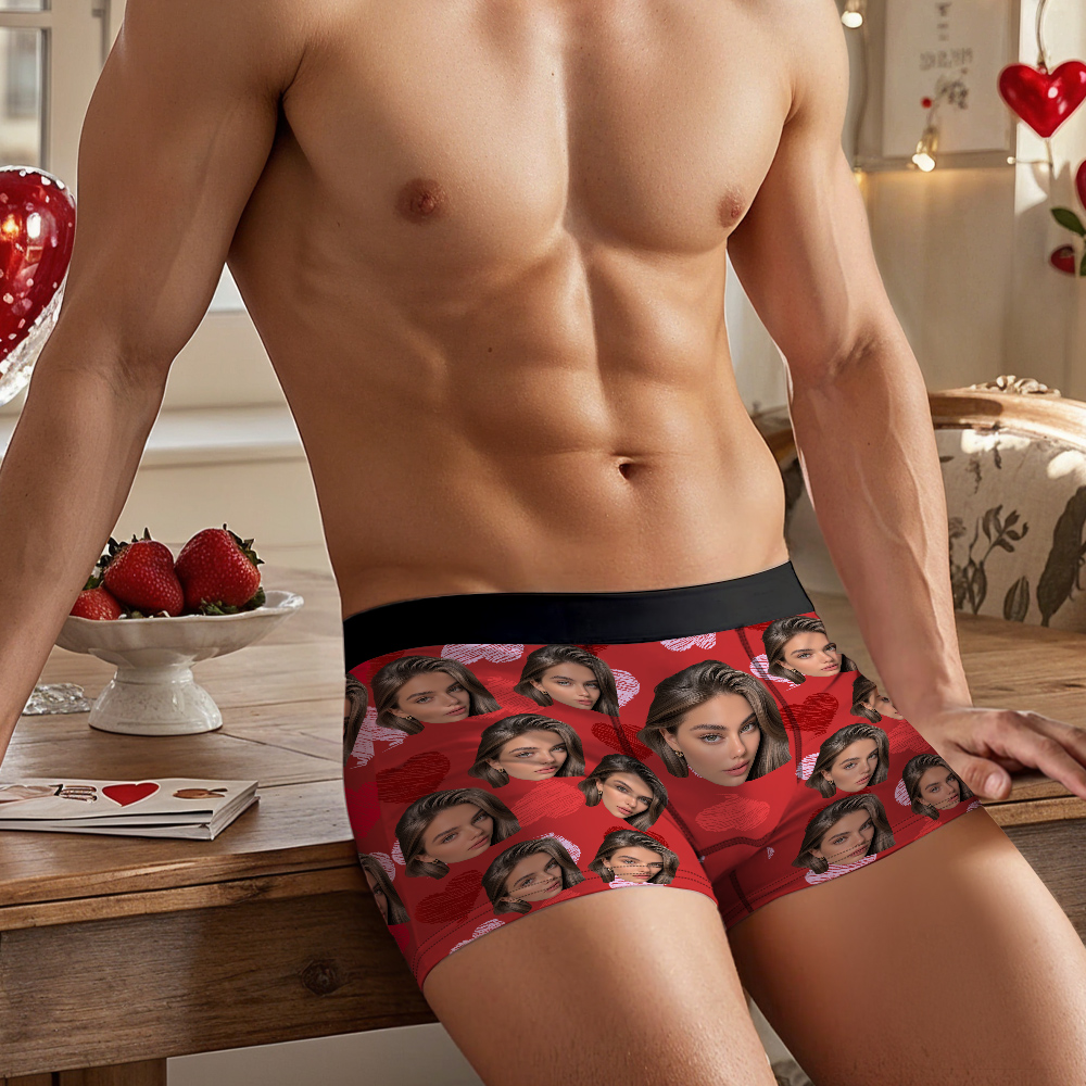 Valentine's Day Gifts Custom Big Face Boxer Shorts Colorful Waistband Boxer Briefs Red and Pink Hearts Gifts For Him