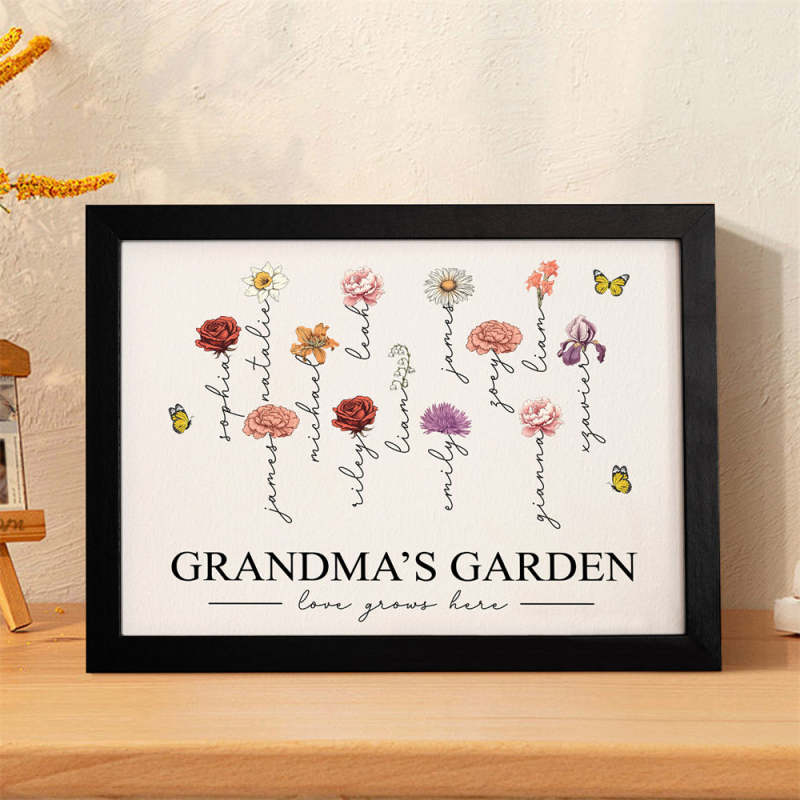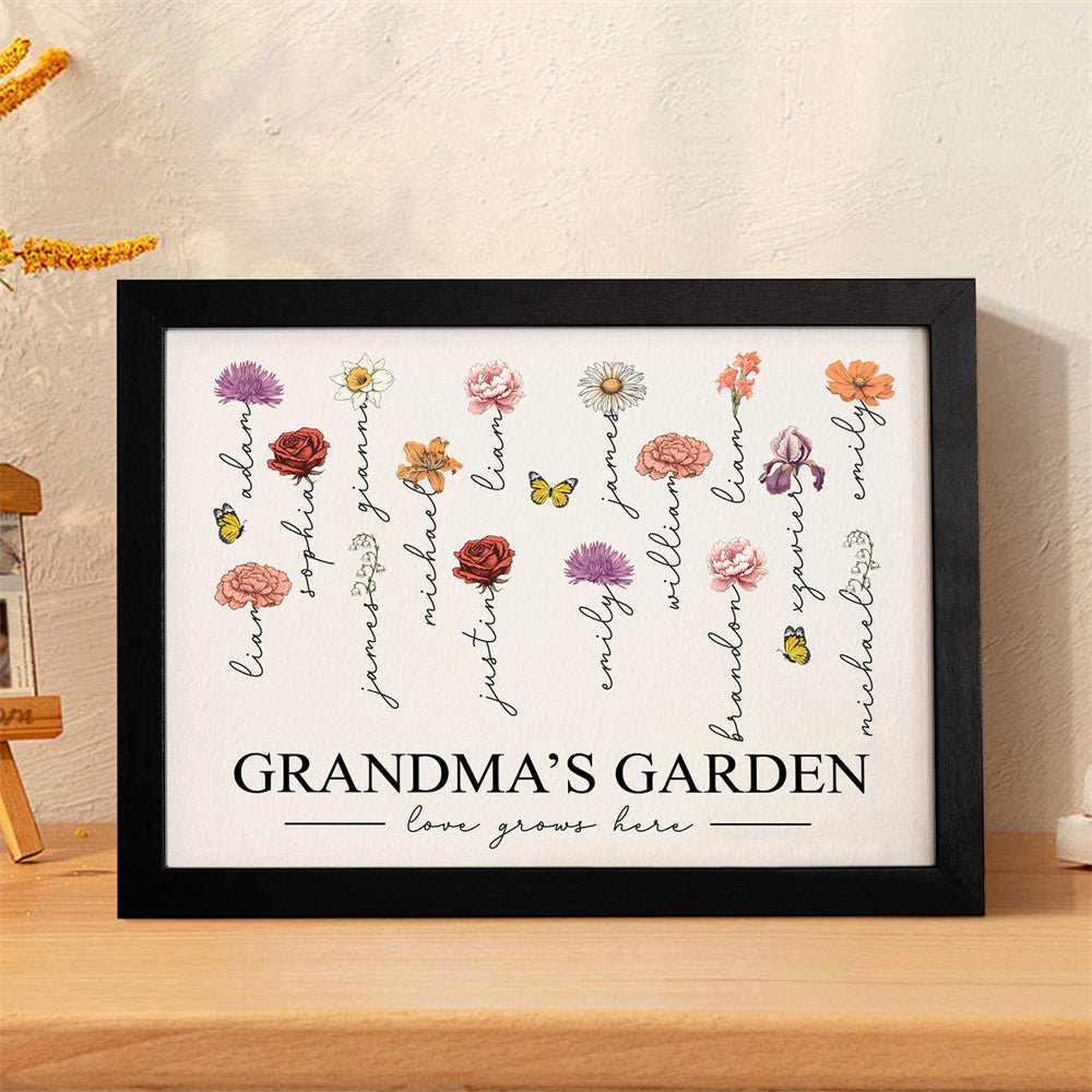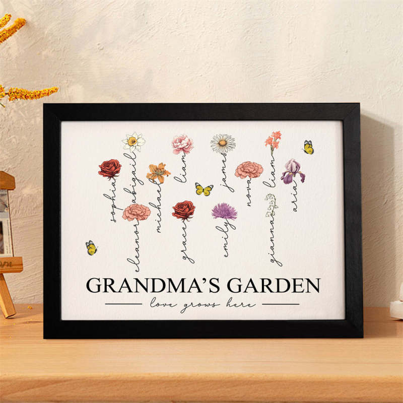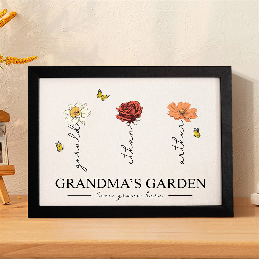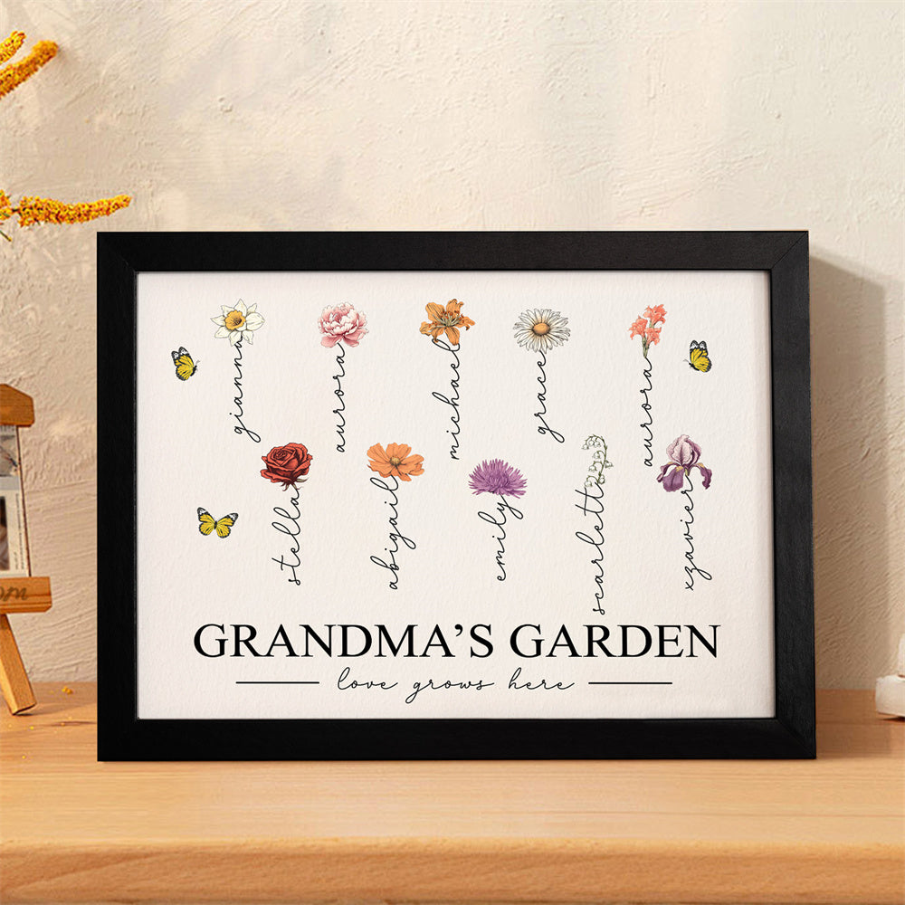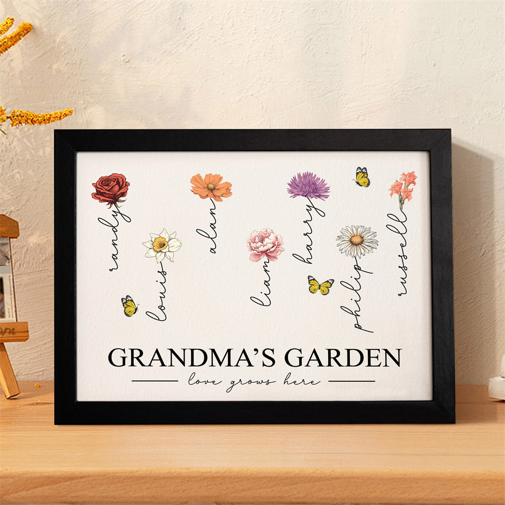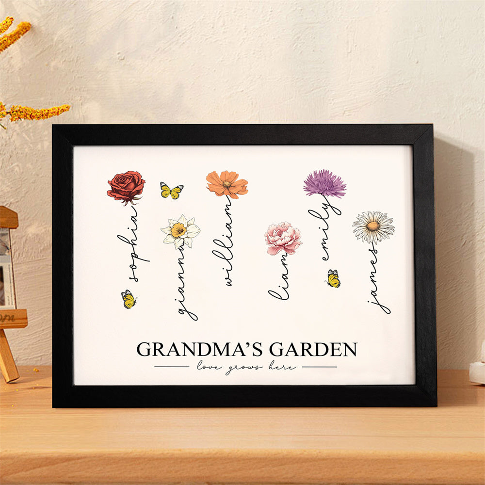 Custom Birth Month Flowers Garden With Grandkids Names Love Grows Here Personalized Wooden Photo Frame Mother's Day Gift