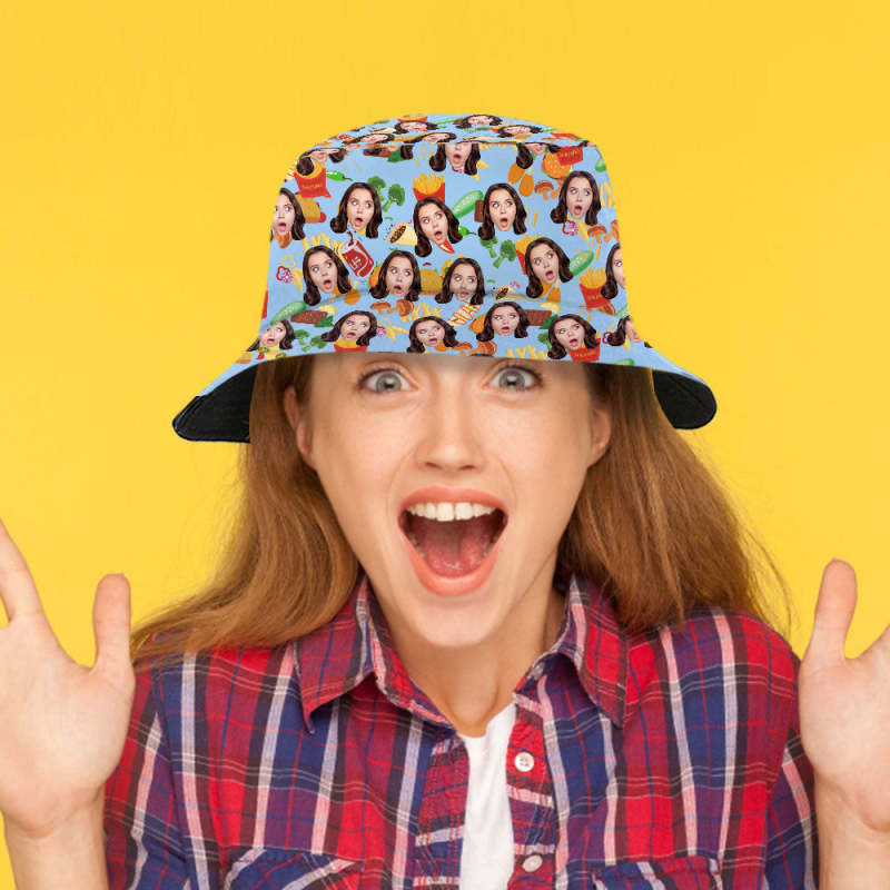 Custom Bucket Hat Personalize Face Food Bucket Hat Summer Wide Brim Fisherman Hat Gifts