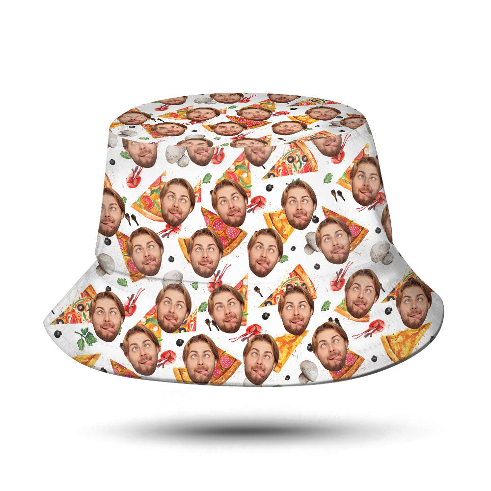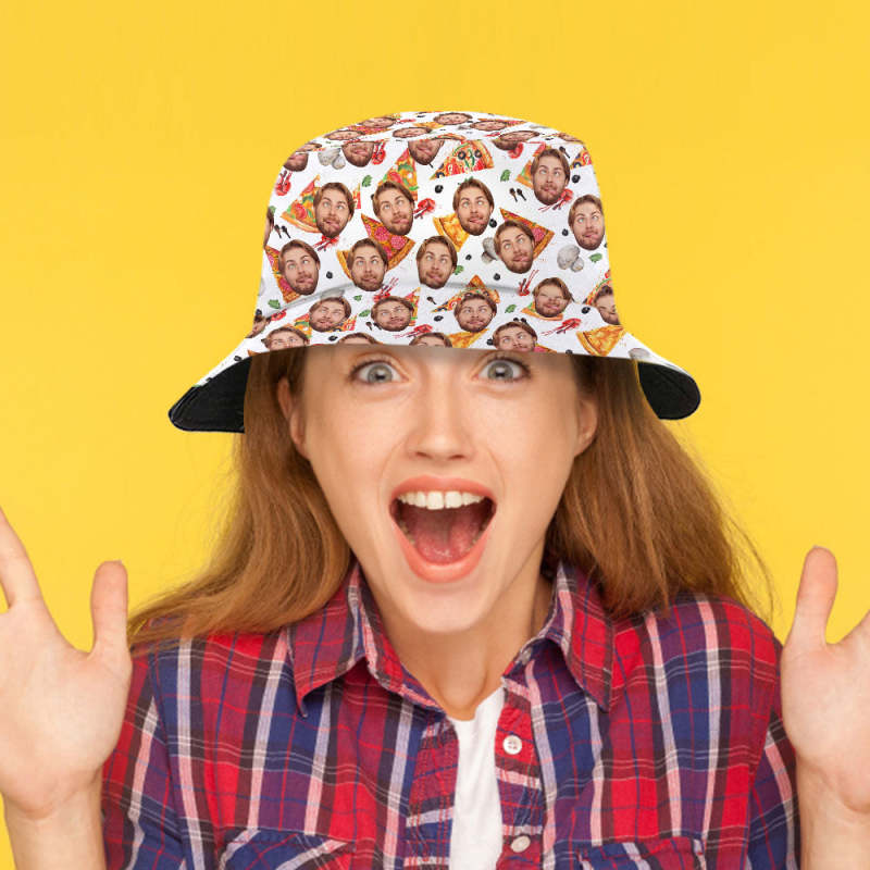 Custom Bucket Hat Personalize Face Pizza Bucket Hat Summer Wide Brim Fisherman Hat Gifts