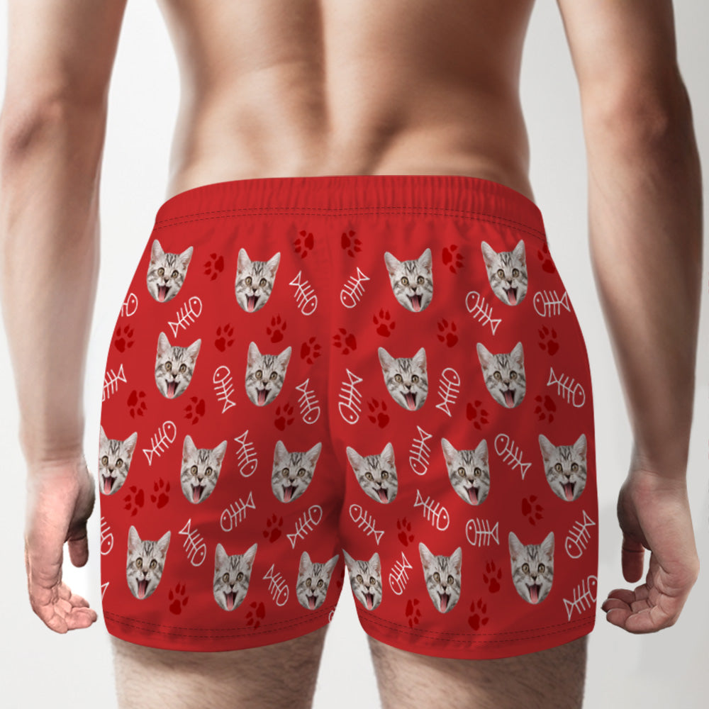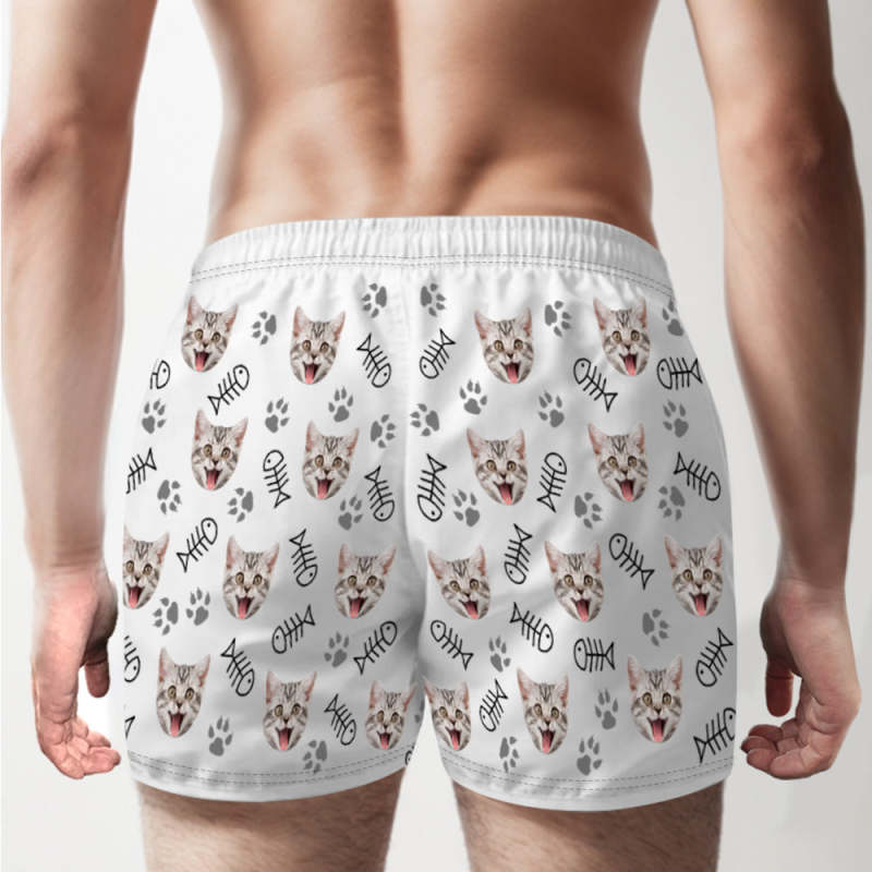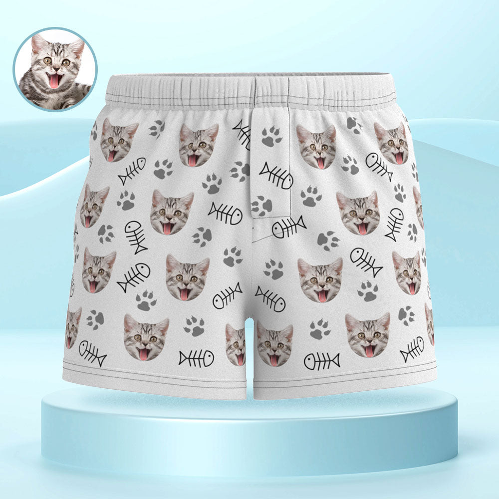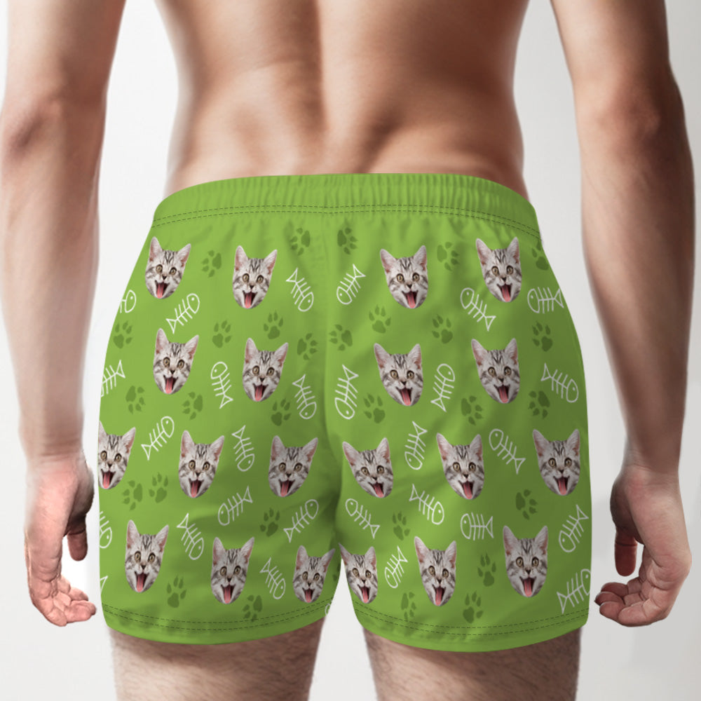 Custom Cat Face Multicolor Boxer Shorts Personalized Casual Underwear Gift for Him