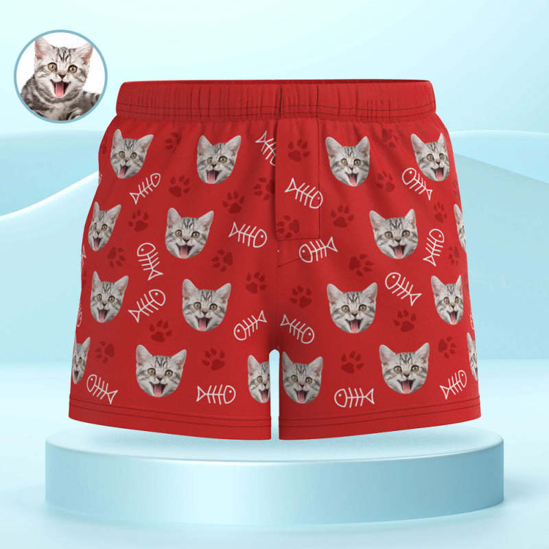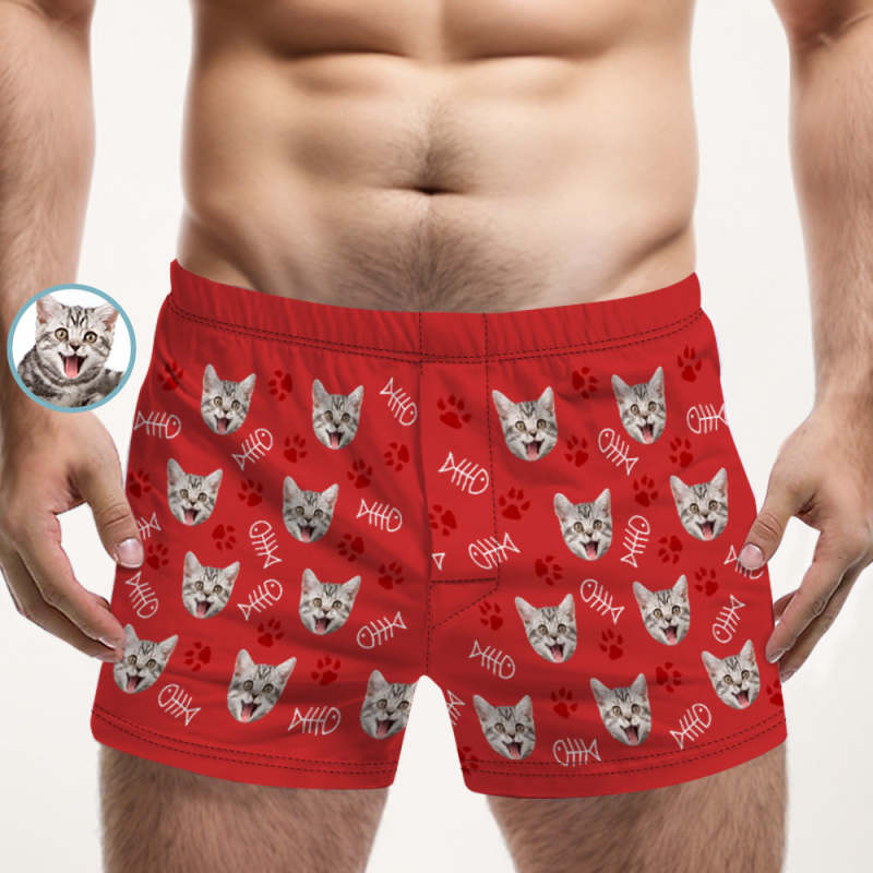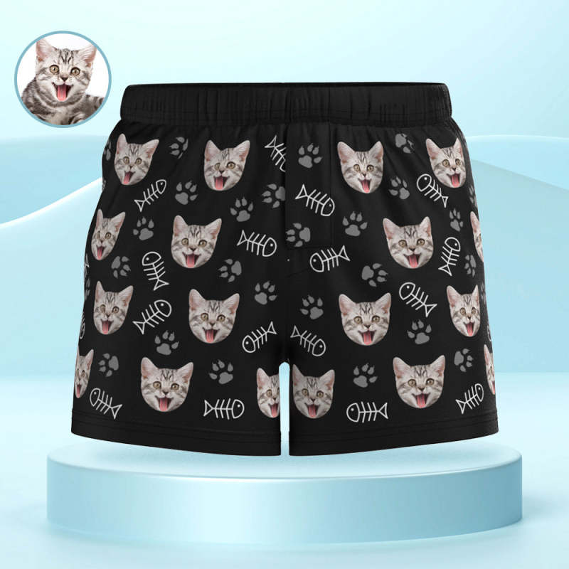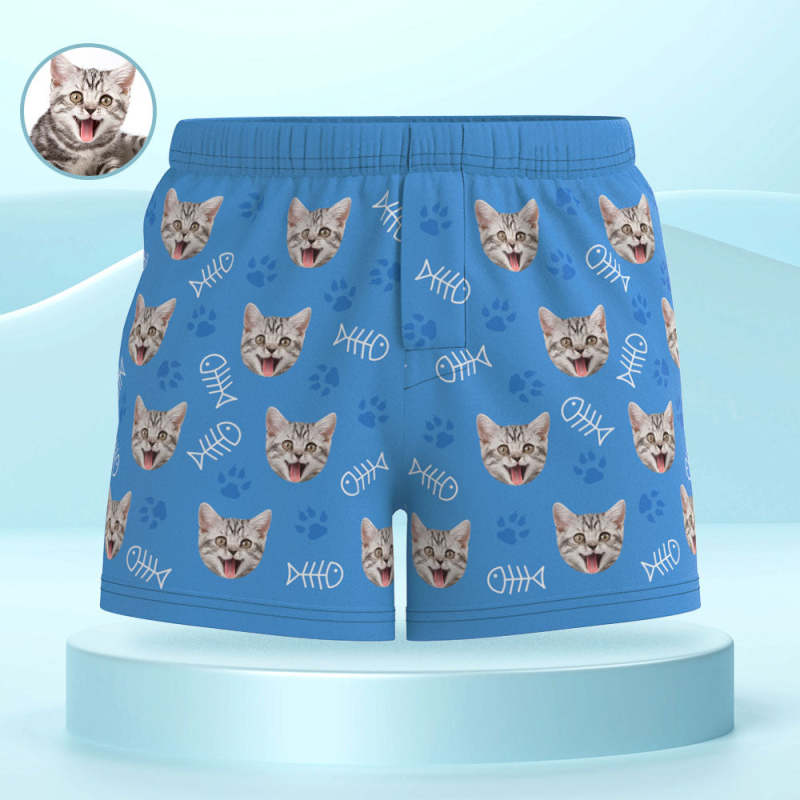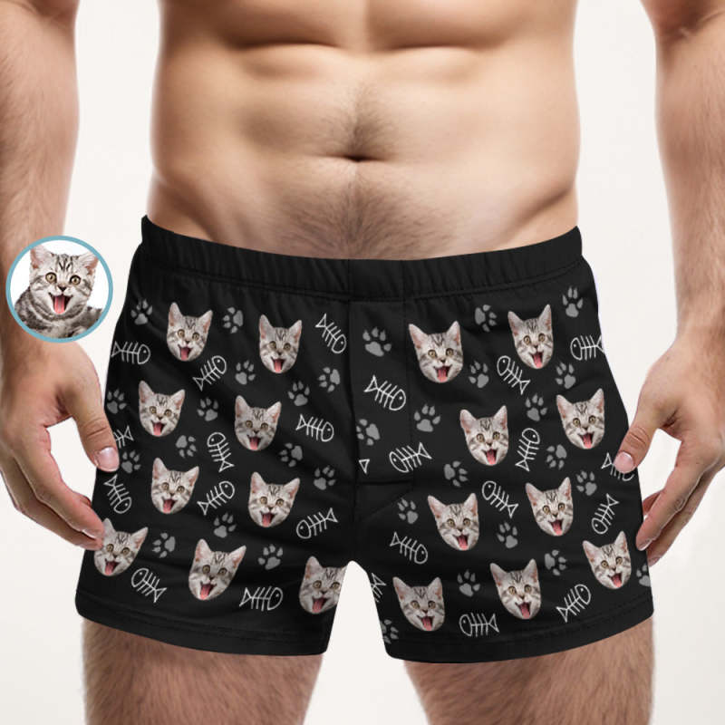 Custom Cat Face Multicolor Boxer Shorts Personalized Casual Underwear Gift for Him