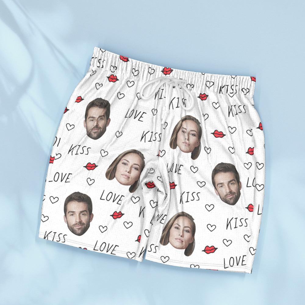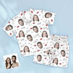 Custom Couple Face Short Sleeved Pajamas Personalized Photo Sleepwear Women Men Love Gifts