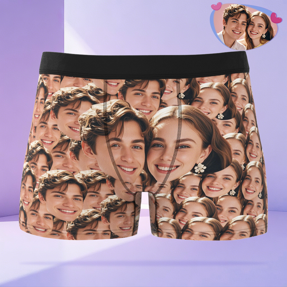 Custom Couple Seamless Face Men's Boxer Shorts Personalized Face Boxer Briefs