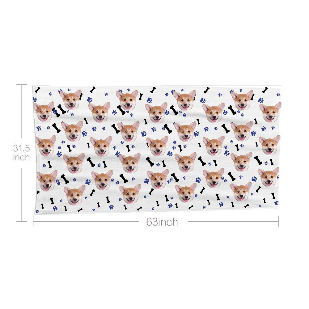 Custom Dog Faces Paw and Bone Towel Personalized Photo Towel Funny Gift