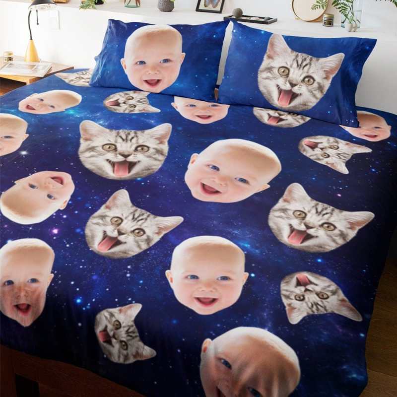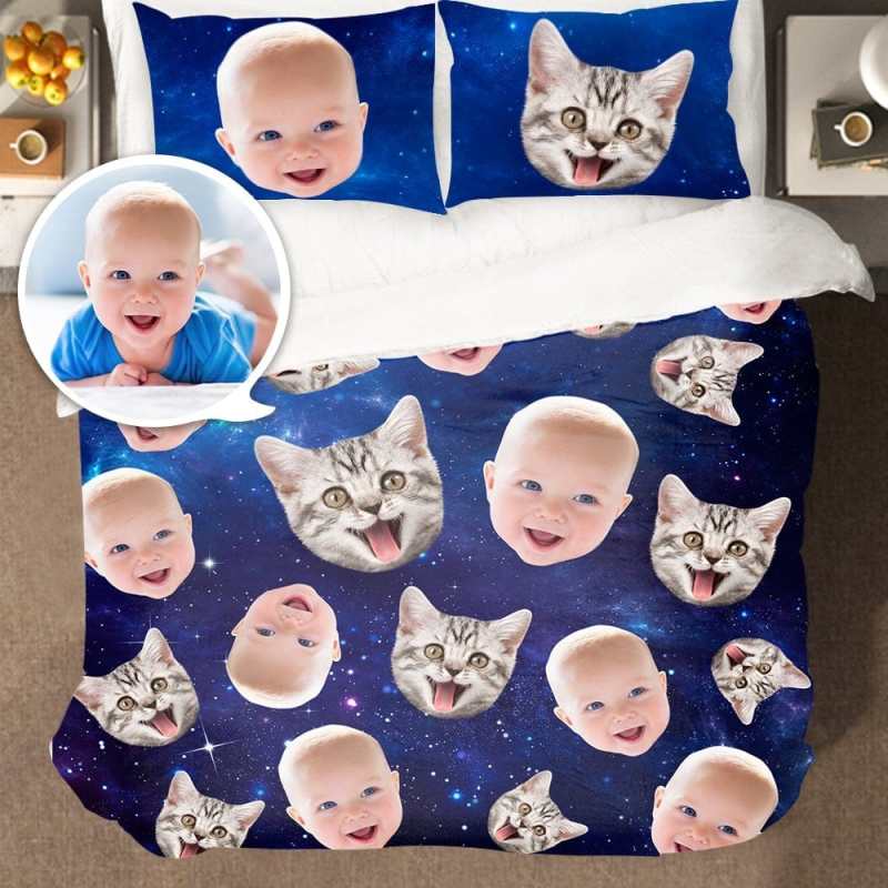 Custom Face Universe Double Bedding Set with Duvet Cover Pillowslip Set Funny Bedding Gift
