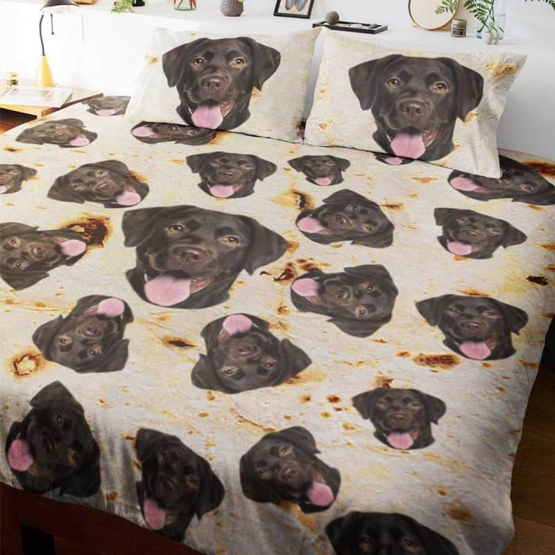 Custom Face Burrito Pattern Bedding Set with Duvet Cover Pillowslip Set Funny Double Bedding Gift