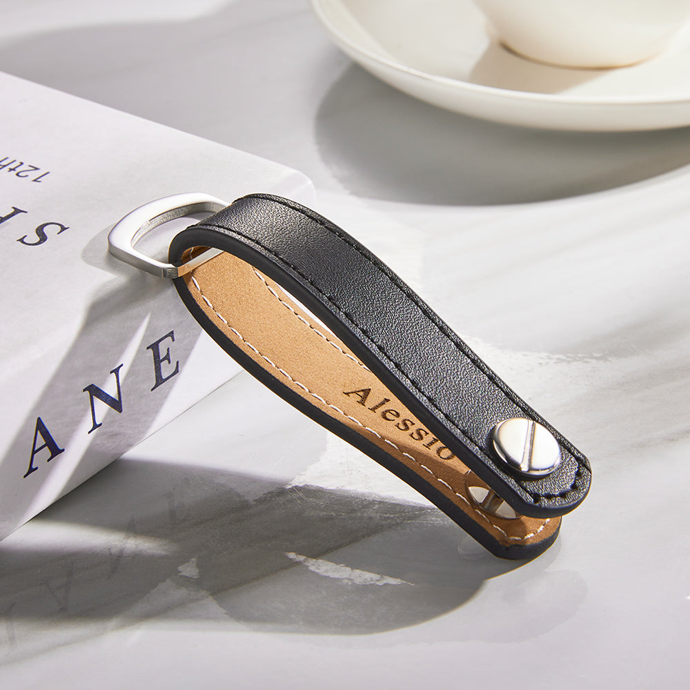 Custom Engraved Keychain Simple Leather Keychain Gifts for Men