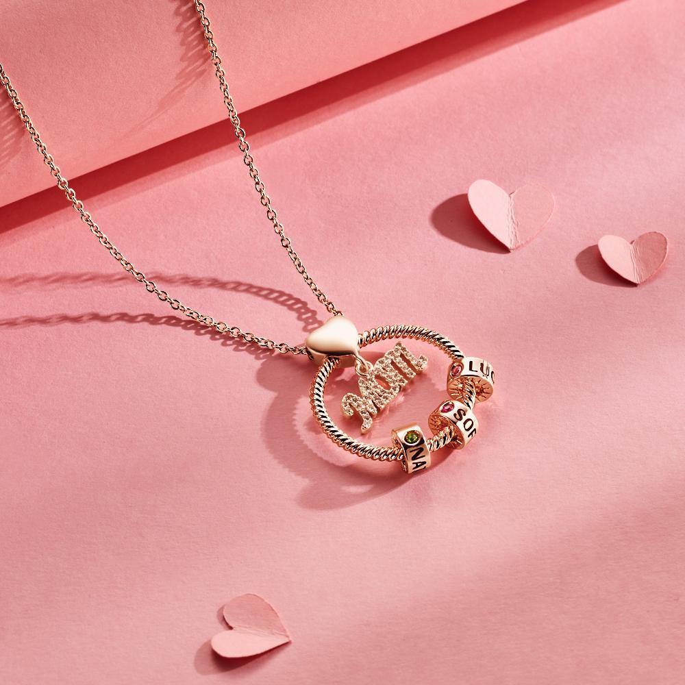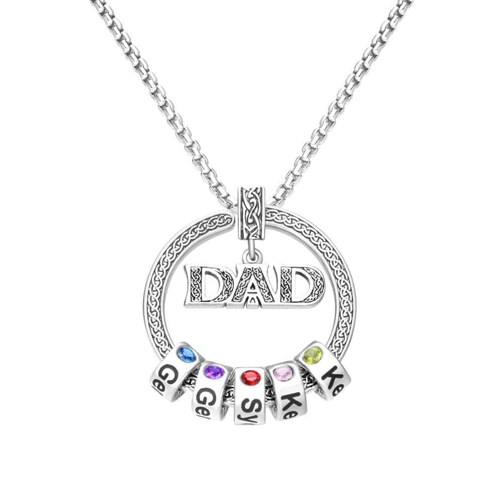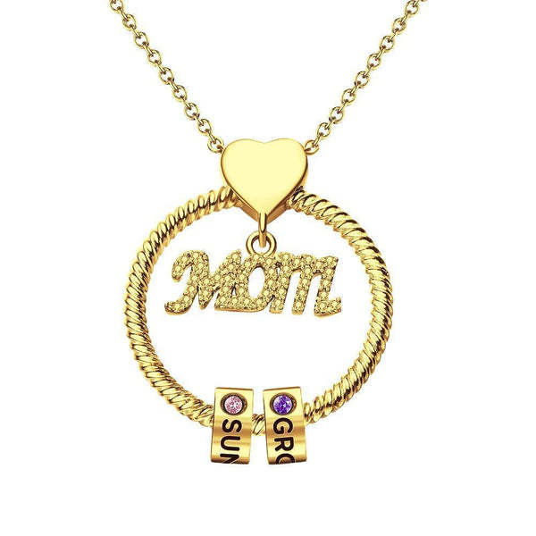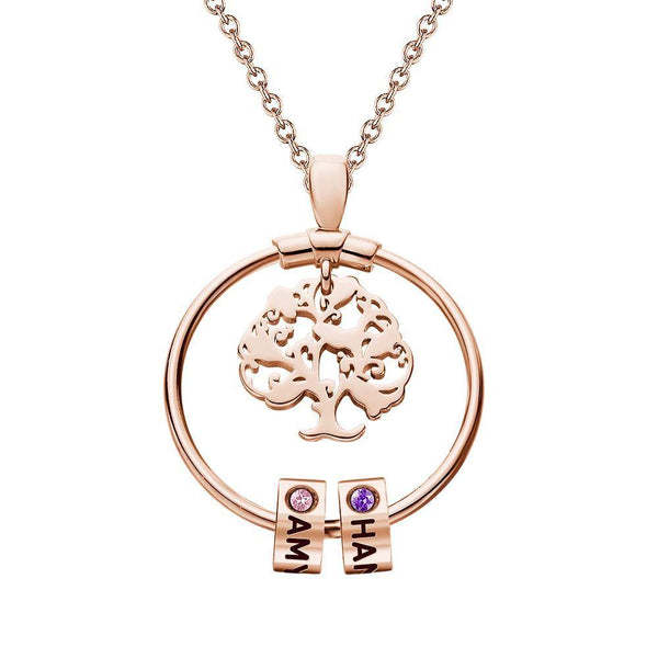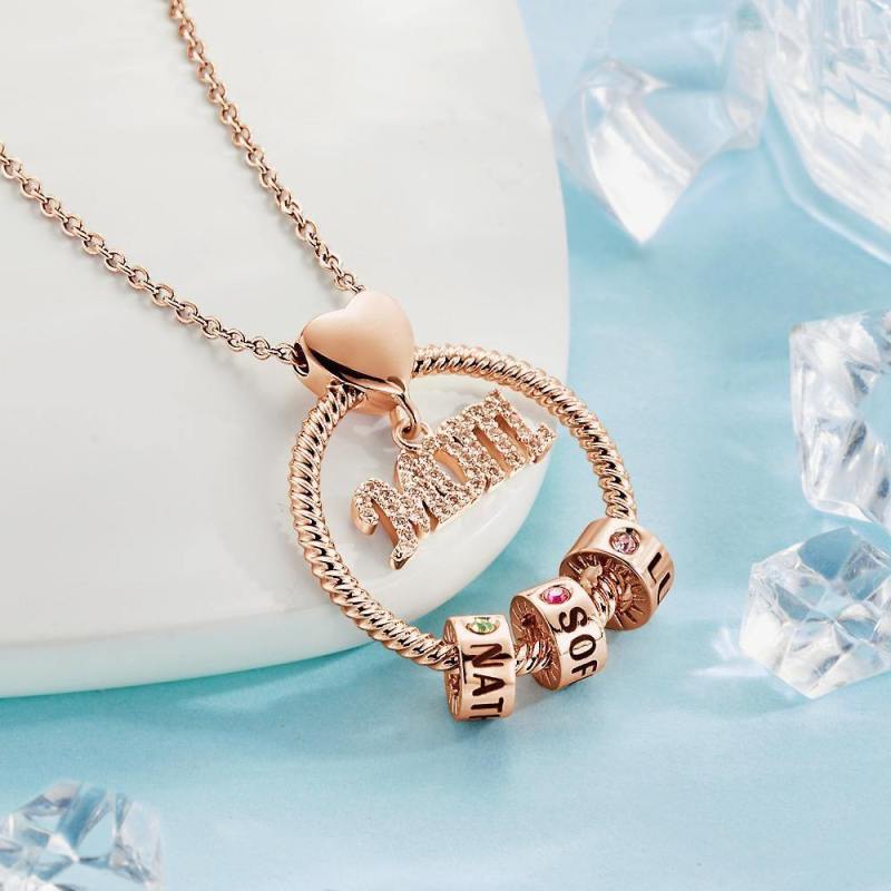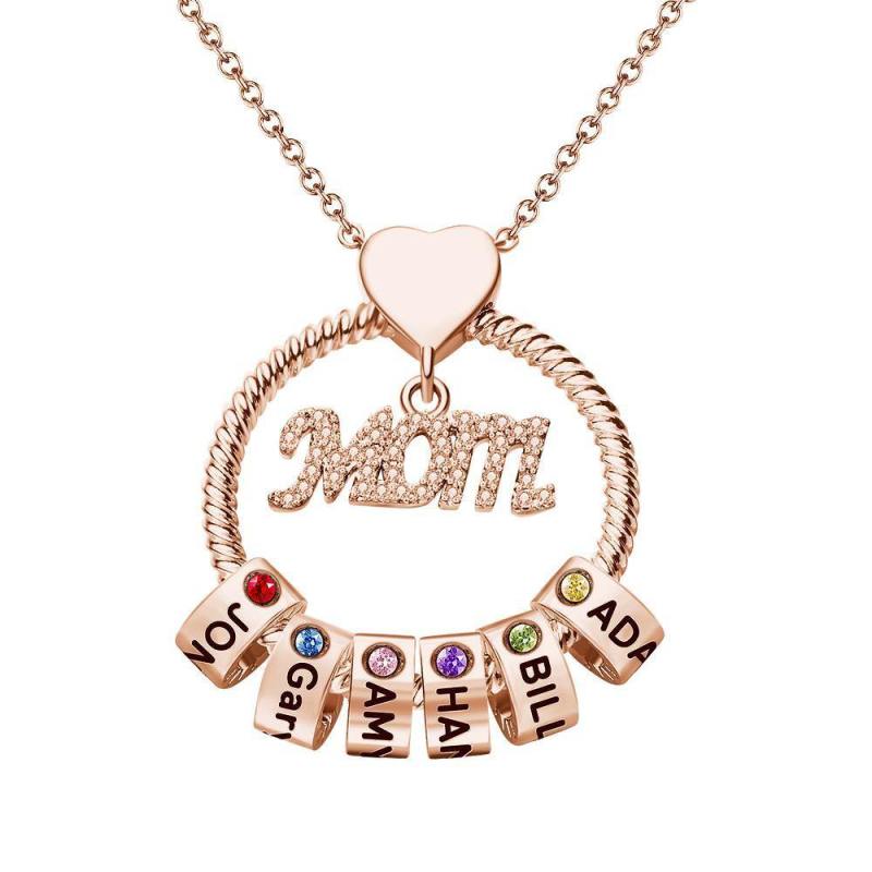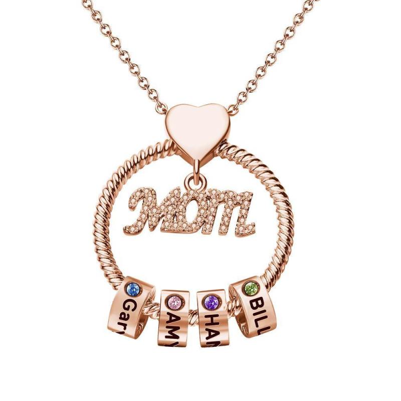 Personalized Necklace features engraved names with custom birthstones of each family member.