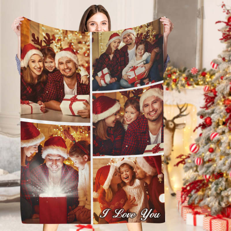 Custom Engraved Photo Collage Blanket Soft Flannel Throw Blankets Soft Room Decoration Gift For Couples On Christmas