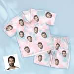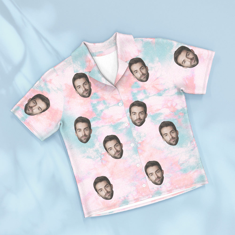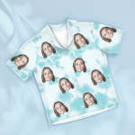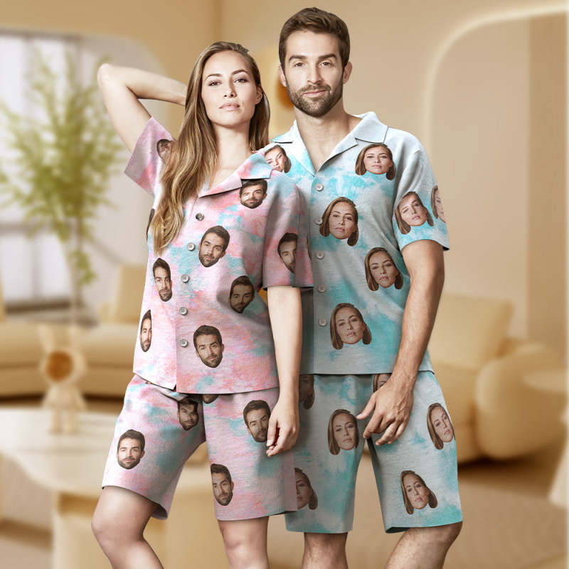 Custom Face Blue Tie Dye Pajamas Personalized Photo Short Sleepwear Love Gifts For Lover