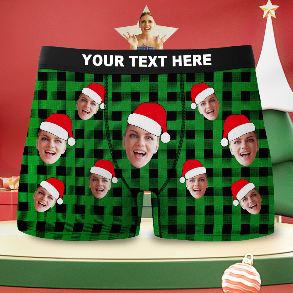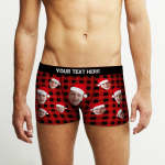 Custom Face Boxer Briefs Personalized Buffalo Plaid Underwear Christmas Gifts for Him