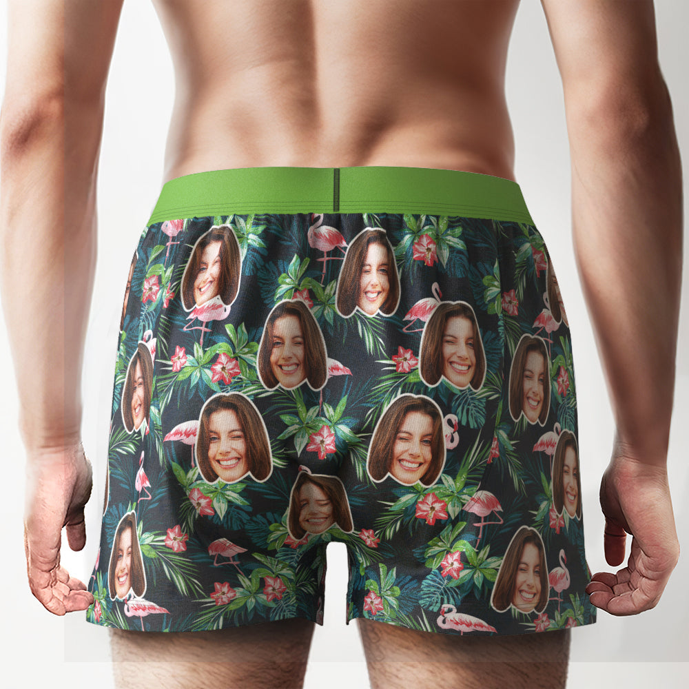 Custom Face Colorful Flamingo Boxer Shorts Personalized Waistband Casual Underwear for Him