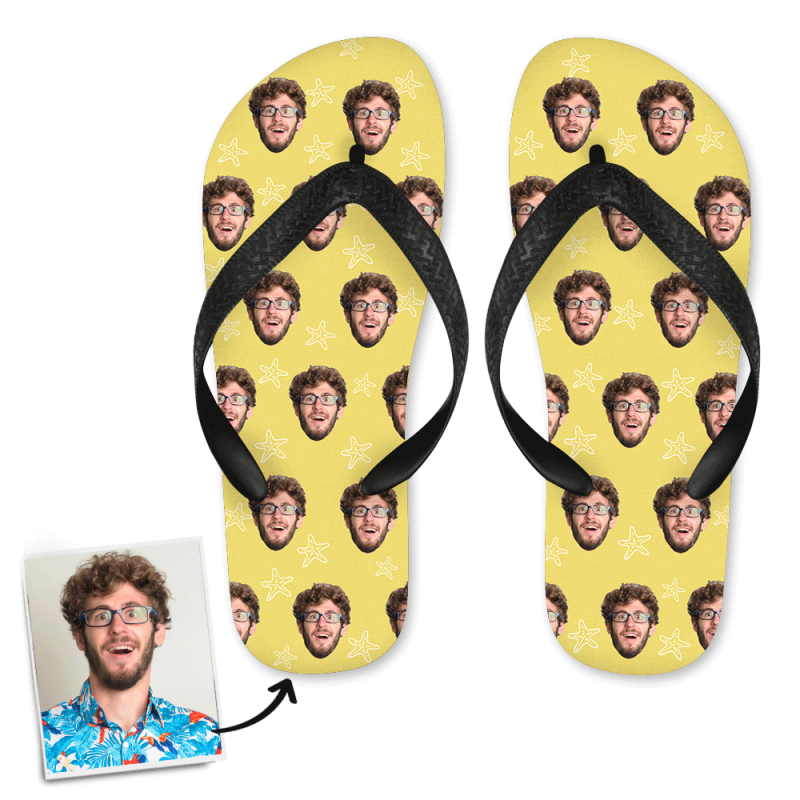 Print your name/face/photo on the custom flip flop or custom slides. Cheer you up or show your love and support for your loved one with your awesome idea.