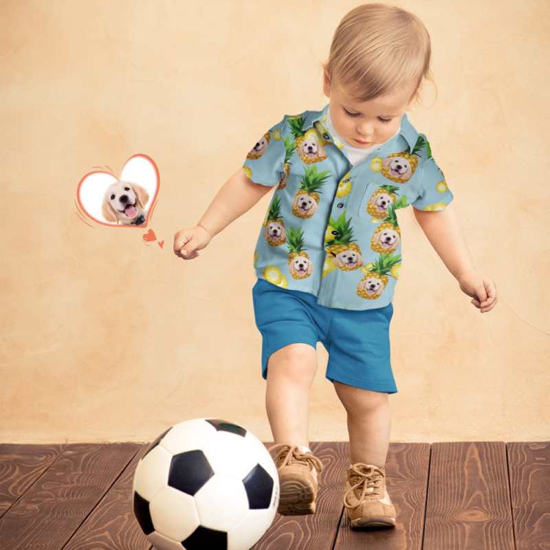 Custom Face Hawaiian Shirt Kid's All Over Print Big Pineapple Short Sleeve Shirt