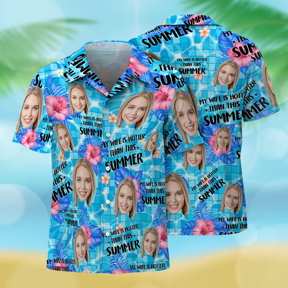 Custom Face Hawaiian Shirt My Wife Is Hotter Than This Summer Aloha Vacation