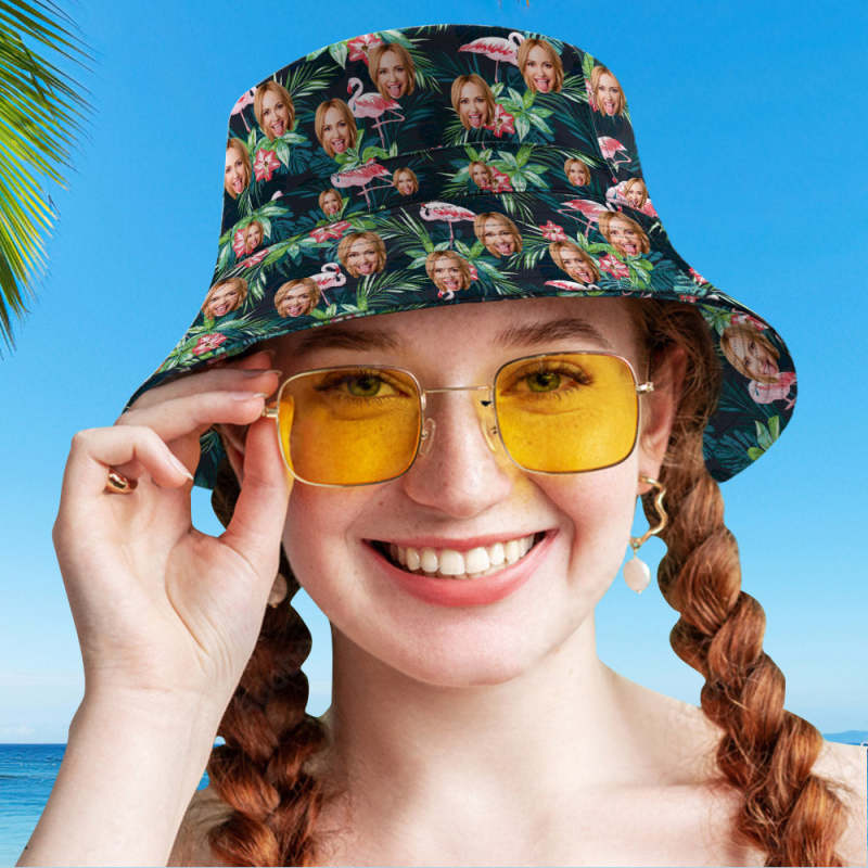 Custom Face Hawaiian Style Bucket Hat Double-Side-Wear Reversible Fisherman Hat