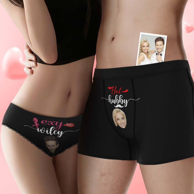 Custom Face Hubby and Wifey Couple Underwear Personalized Underwear Valentine's Day Gift
