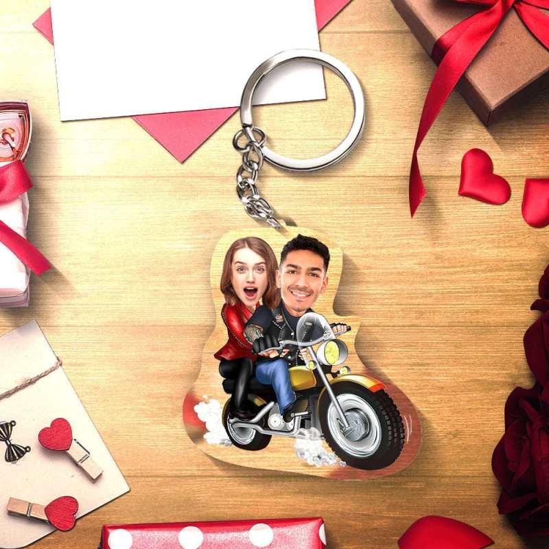 Custom Face Keychain Personalized Couple Keychain Valentines Day Gifts - Motorcycle