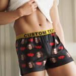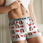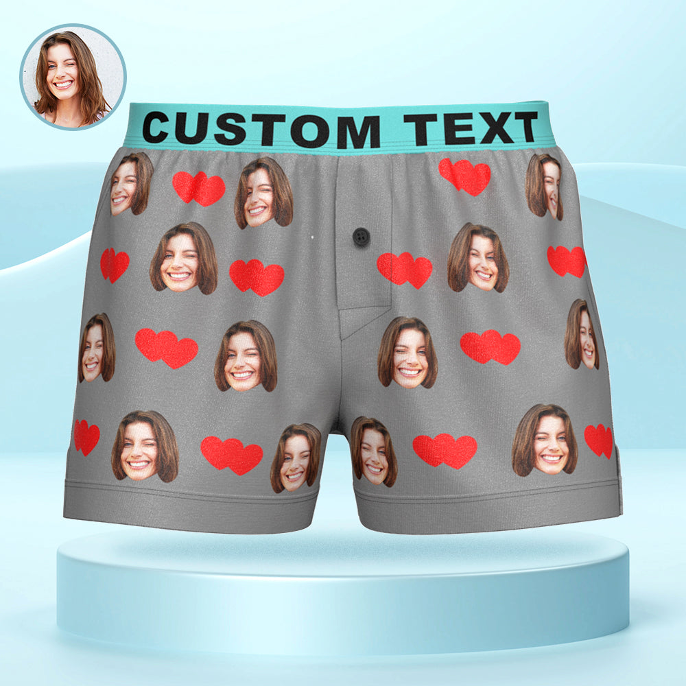 Custom Face Love Hearts Boxer Shorts Personalized Waistband Casual Underwear for Him