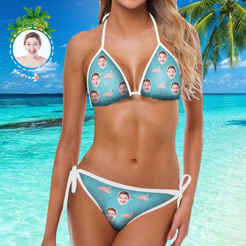 Custom Face Matching Couples Swimsuits Flamingo Blue Couples Swimwear Gift for Lovers