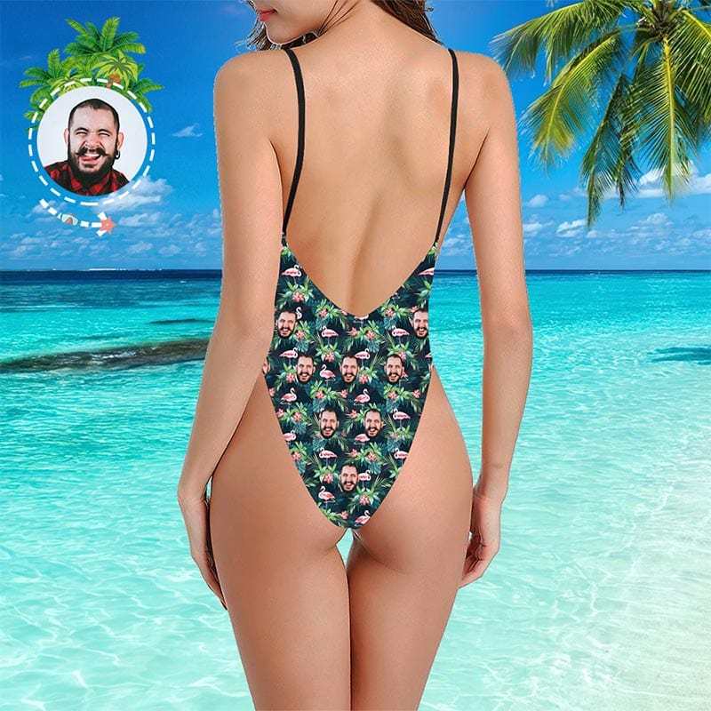 Custom Face Matching Couples Swimsuits Flamingo Couples Swimwear Gift for Lovers