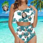 Custom Face Matching Couples Swimsuits Leaves Couples Swimwear Gift for Lovers