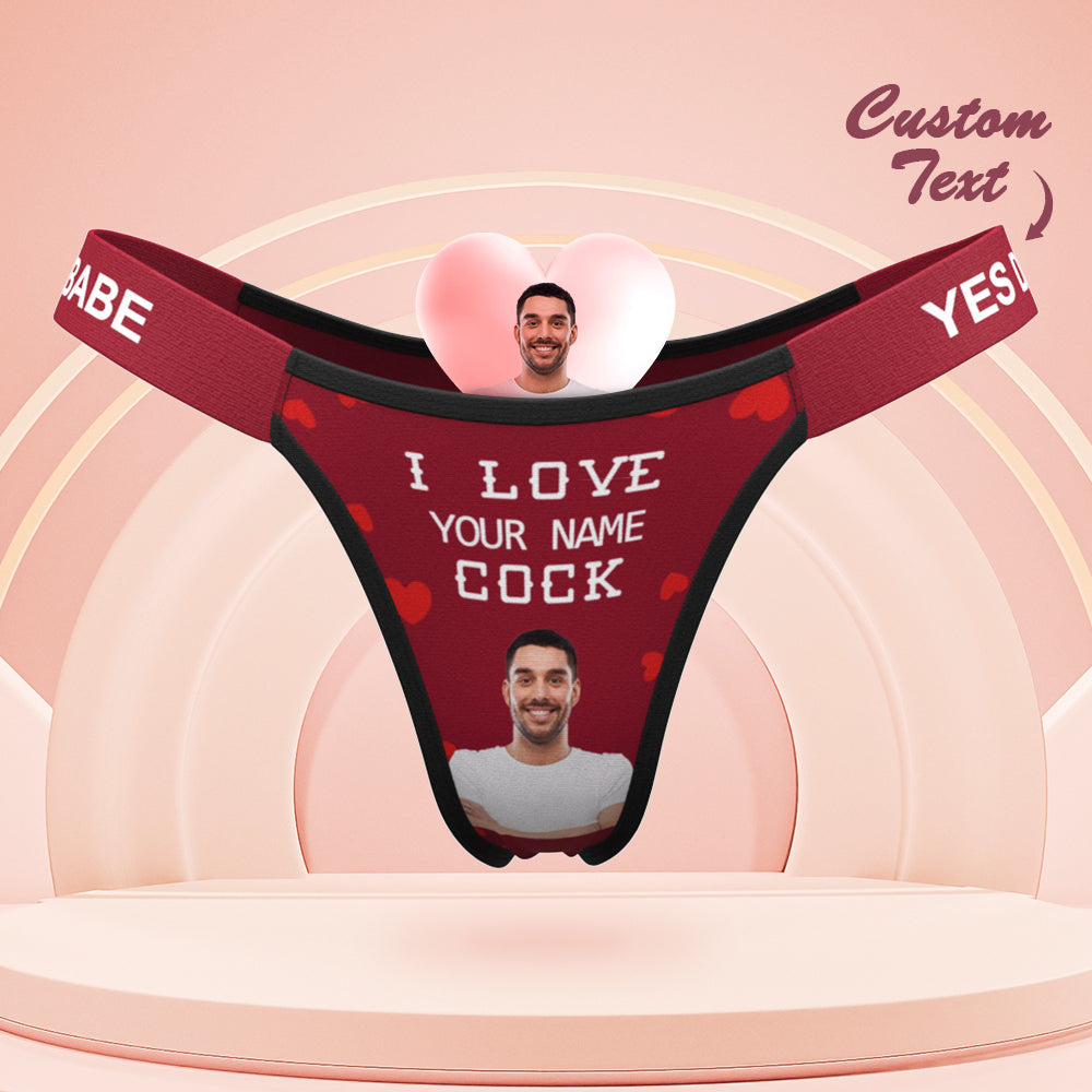 Custom Face Panties Love Your Cock Personalized Waistband Engraved Thong Gift for Her