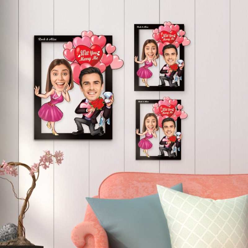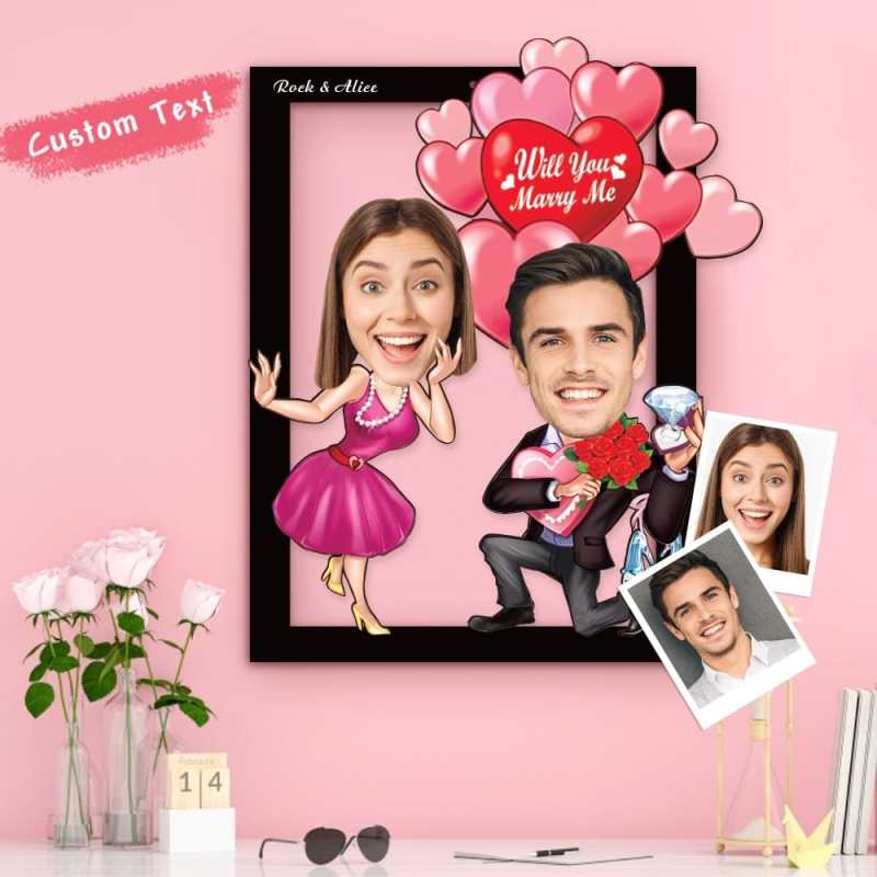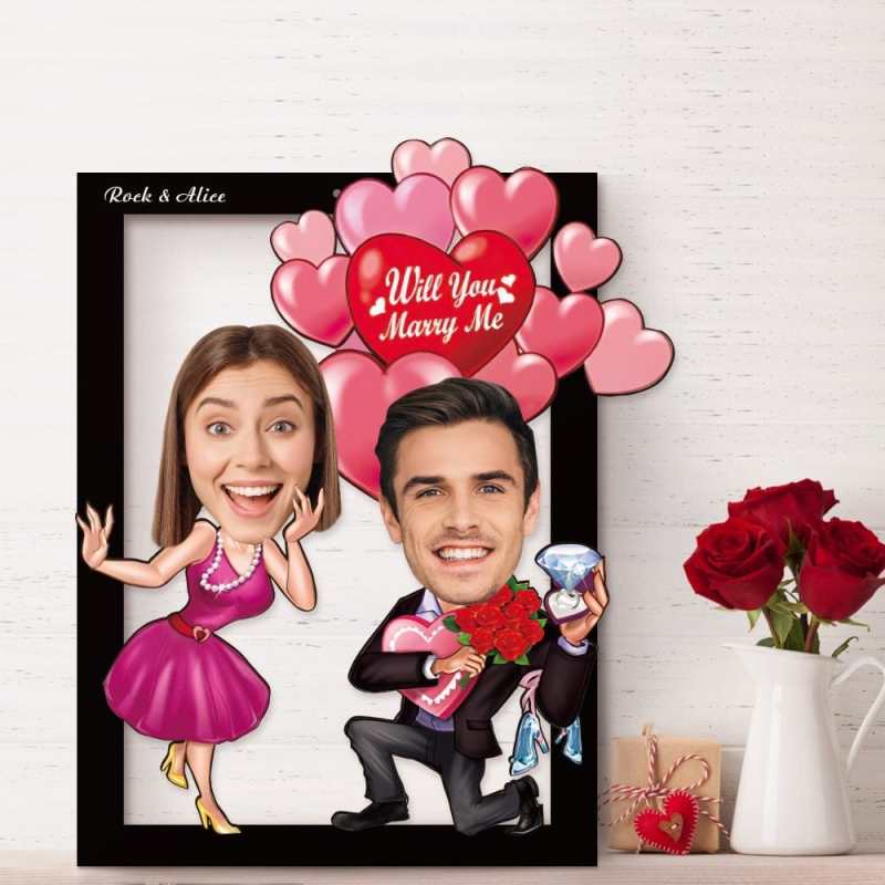 Custom Face Photo Wooden Frame Personalized Proposing Couple Wooden Wall Art for Valentines Gift