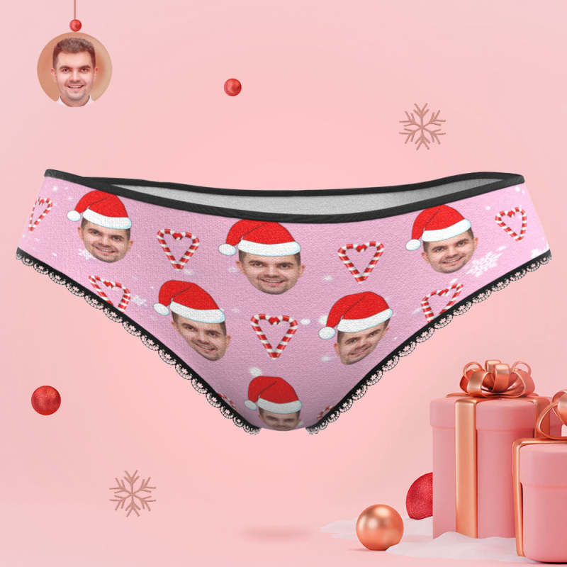 Custom Face Pink Christmas Candy Women's Panties Personalised Pink Christmas Gift