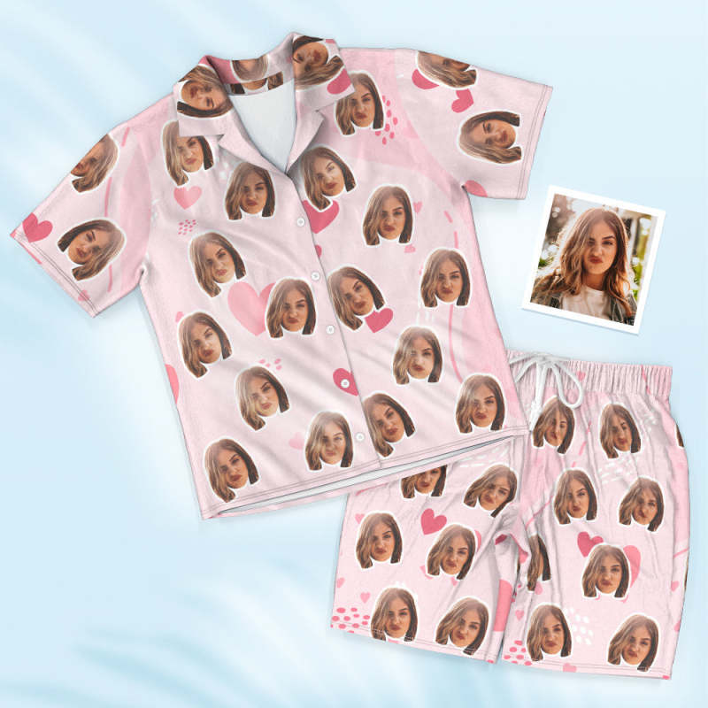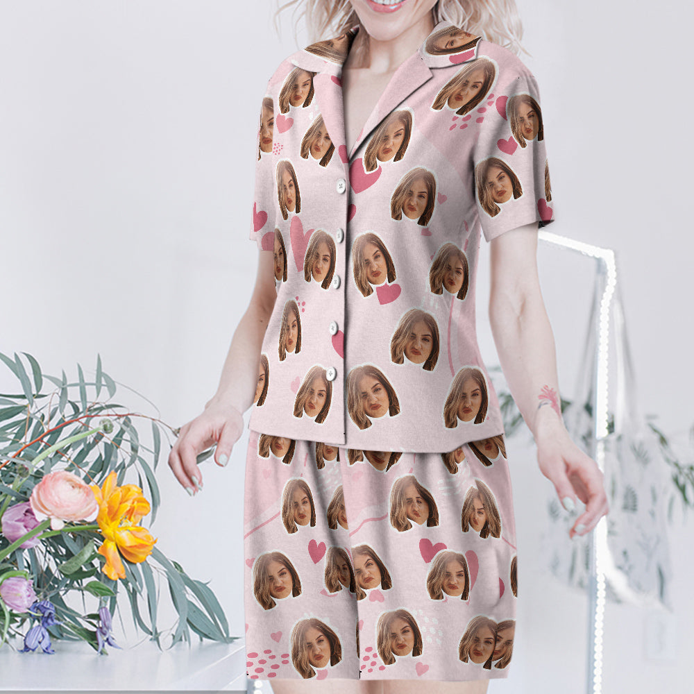 Custom Face Short Sleeved Pajamas Personalised Women's Sleepwear Love Gifts For Her