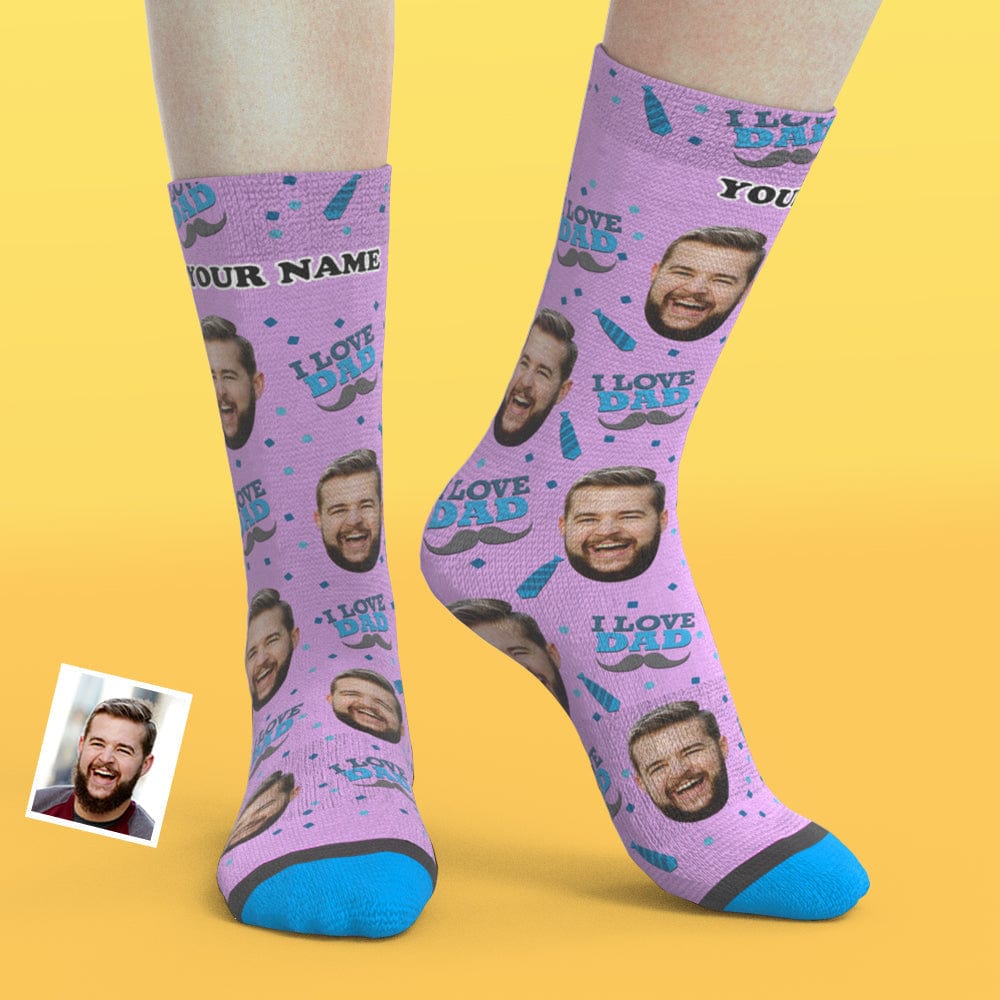 Custom Face Socks 3D Digital Printed Socks Add Pictures and Name - I Love Dad