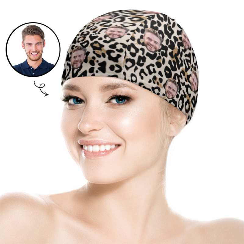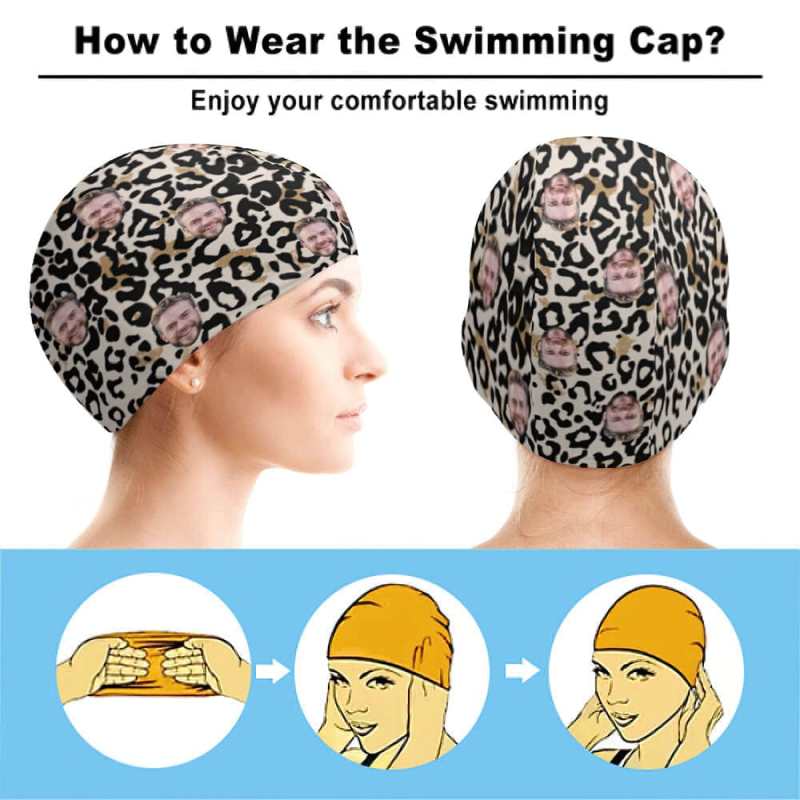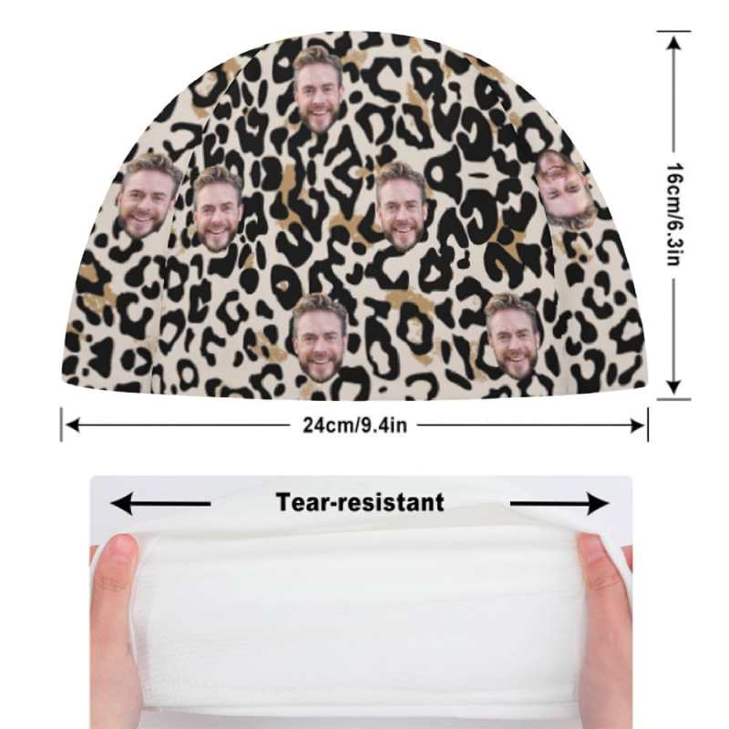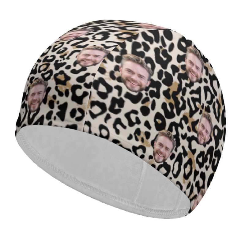Personalized Face Swimming Cap Custom Swimming Cap Leopard Print Swim Caps Unisex