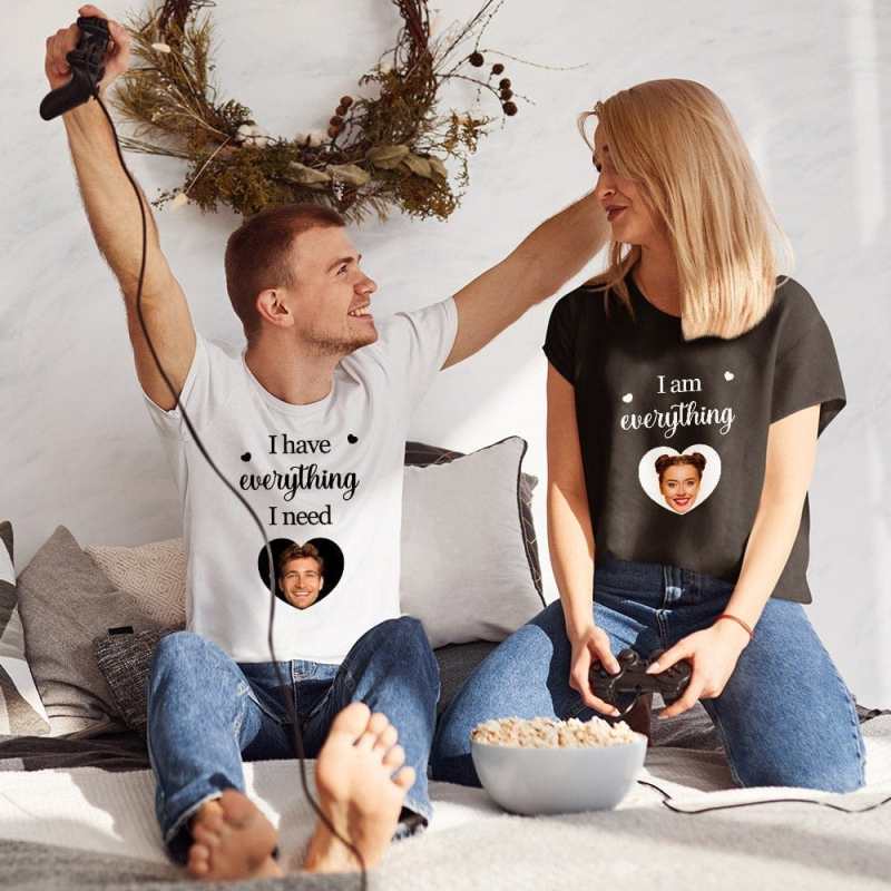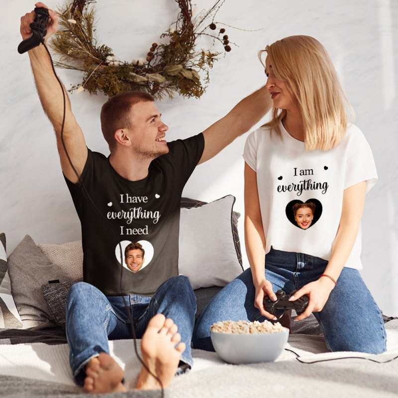 Custom Face T-shirt Valentine's Day Gift for Couples I am Everything