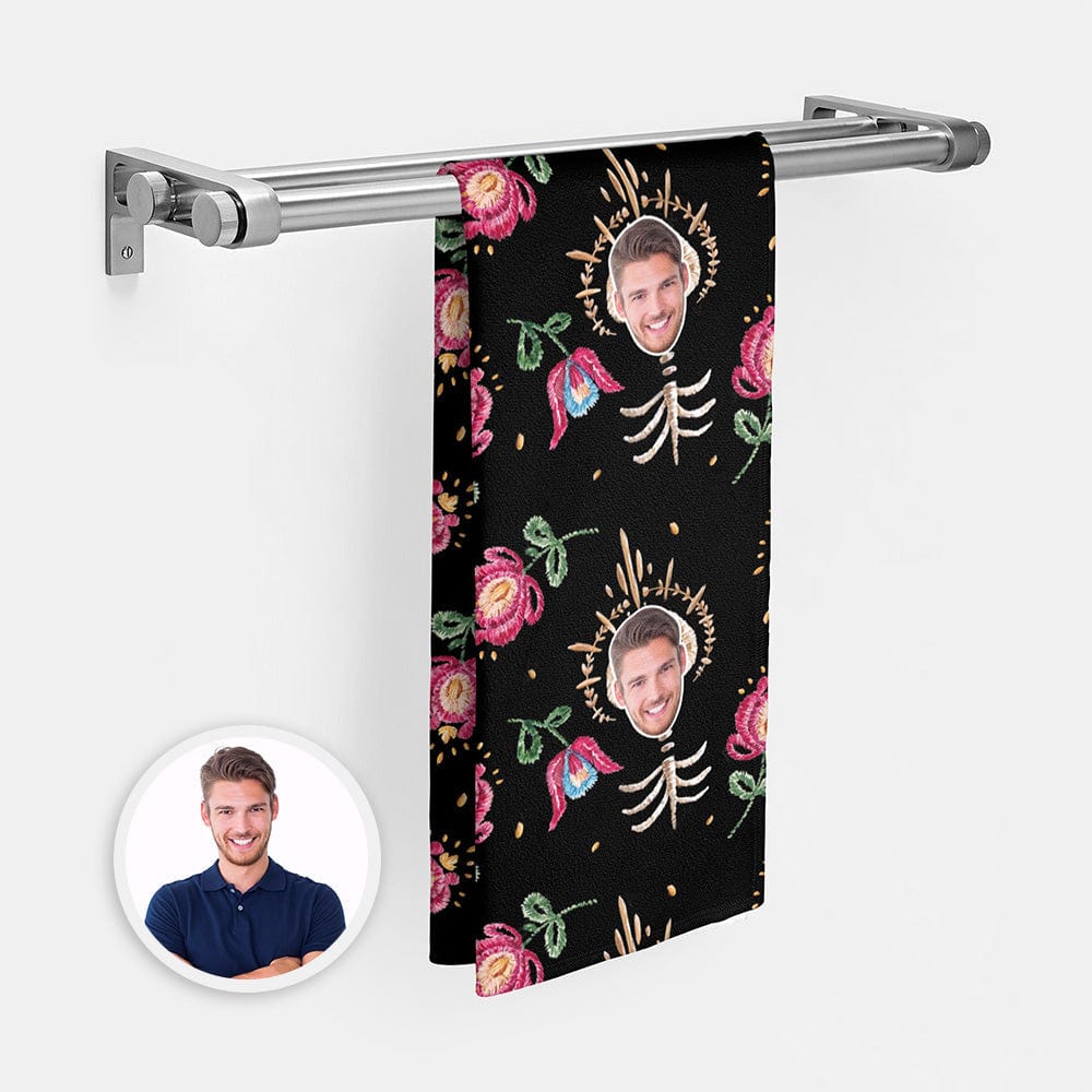 Custom Face Bone Flowers Towel Personalized Photo Towel Funny Gift