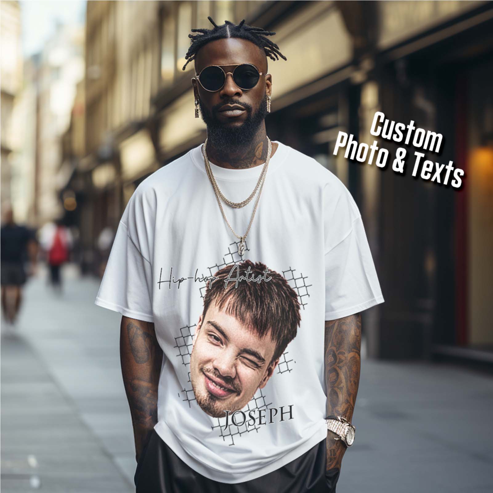 Custom Face Vintage T-shirt Personalized Portrait Fashion Rap Tee with Name