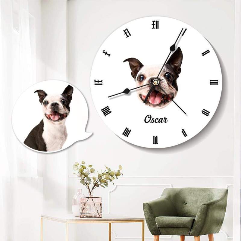 - This custom clock serves as a perfect gift for a new home gift. The high-quality printed wall clock will be an essential decoration of your home, office, or kitchen wall.