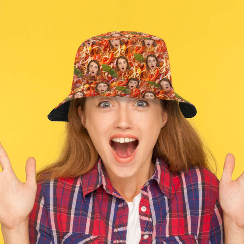 Custom Funny Bucket Hat Personalize Face Pasta Bucket Hat Summer Wide Brim Fisherman Hat Gifts