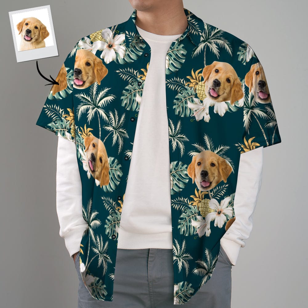 Custom Hawaiian Shirts with Pet Face Funky Vintage Hawaiian Shirt Casual Short Sleeve Shirt