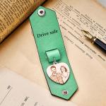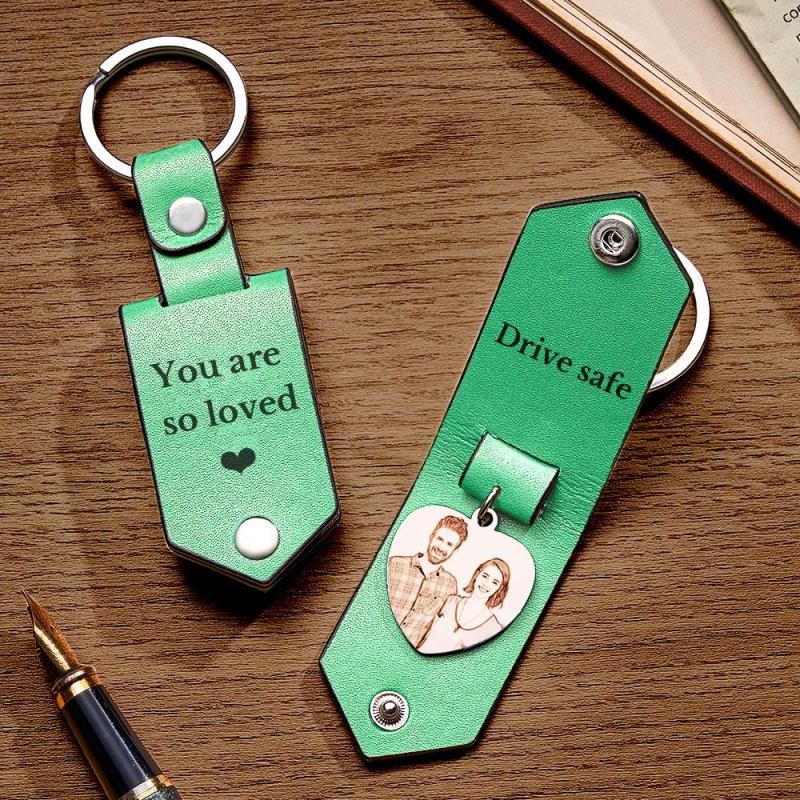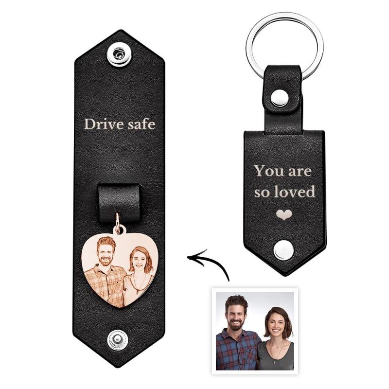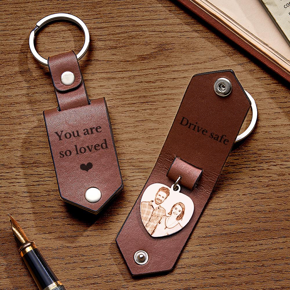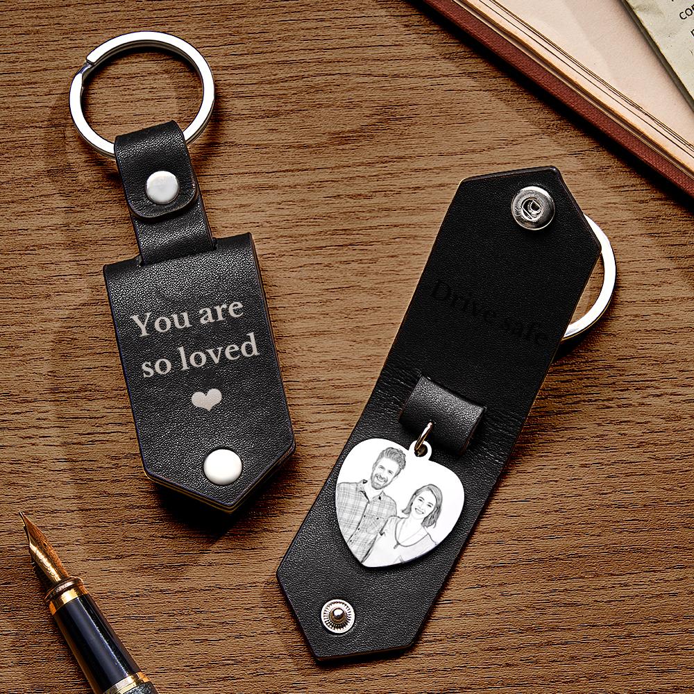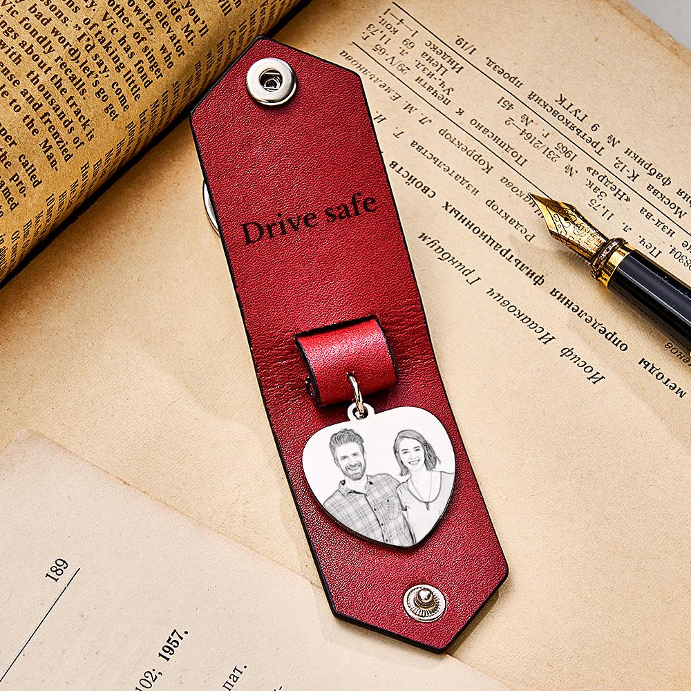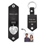 Custom Heart Shaped Photo Leather Keychain With Text Annivesary Gifts For Men