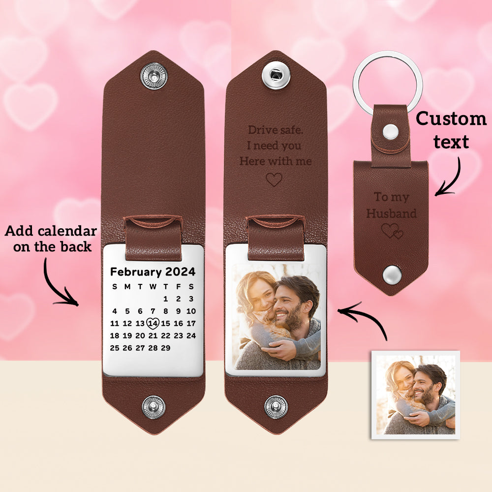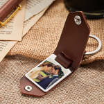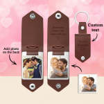 Custom Leather Photo Text Keychain Anniversary Gift For Couple