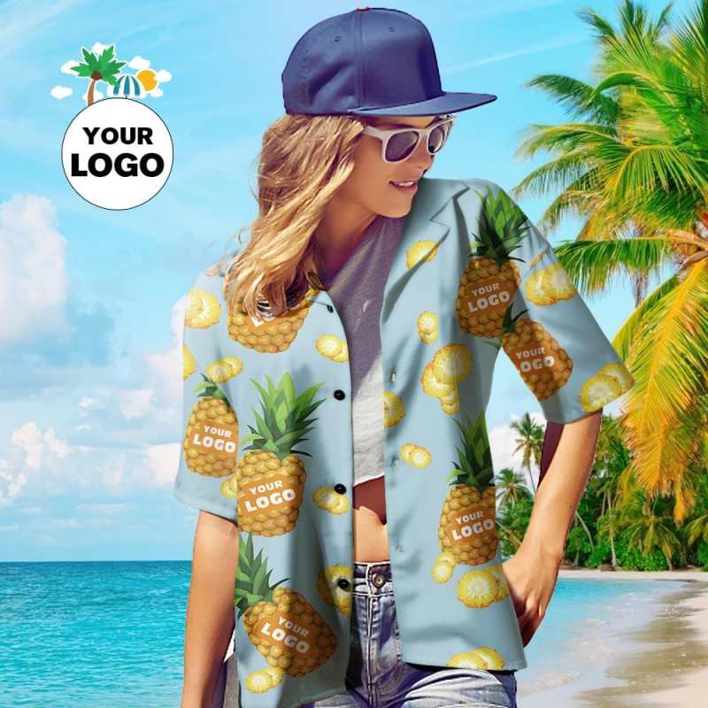 Custom Logo Hawaiian Shirt Women's All Over Print Big Pineapple Short Sleeve Shirt