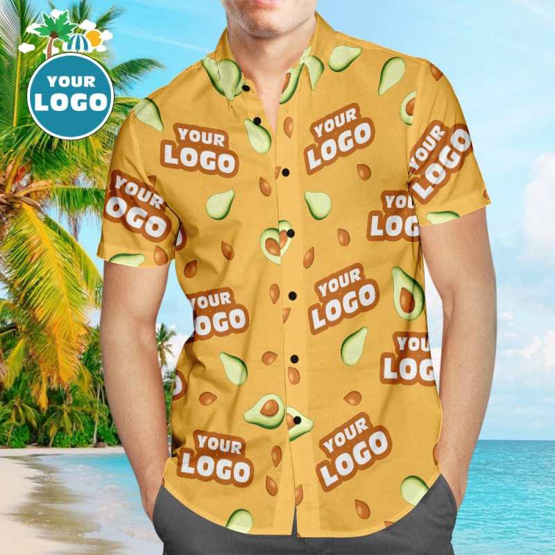 Custom Logo Hawaiian Shirts Avocado Personalized Aloha Beach Shirt For Men