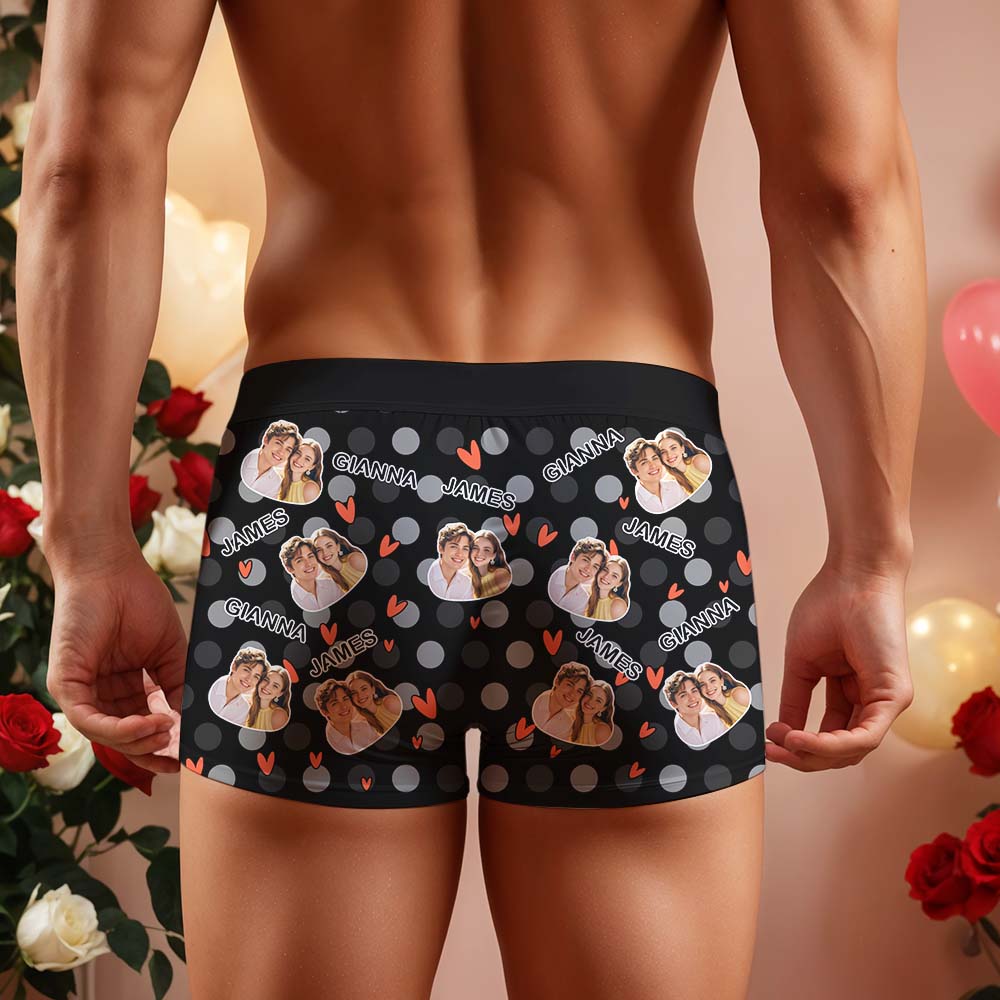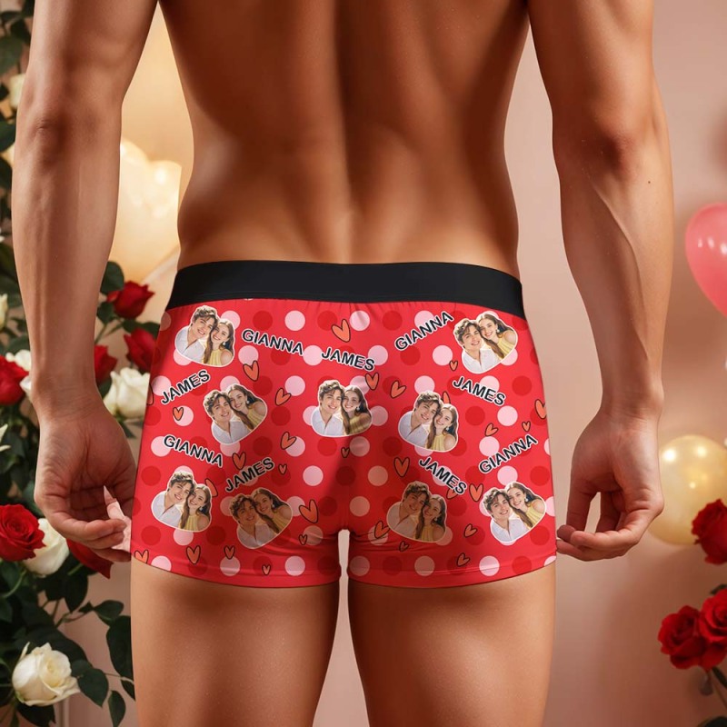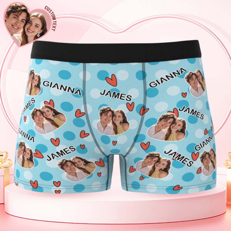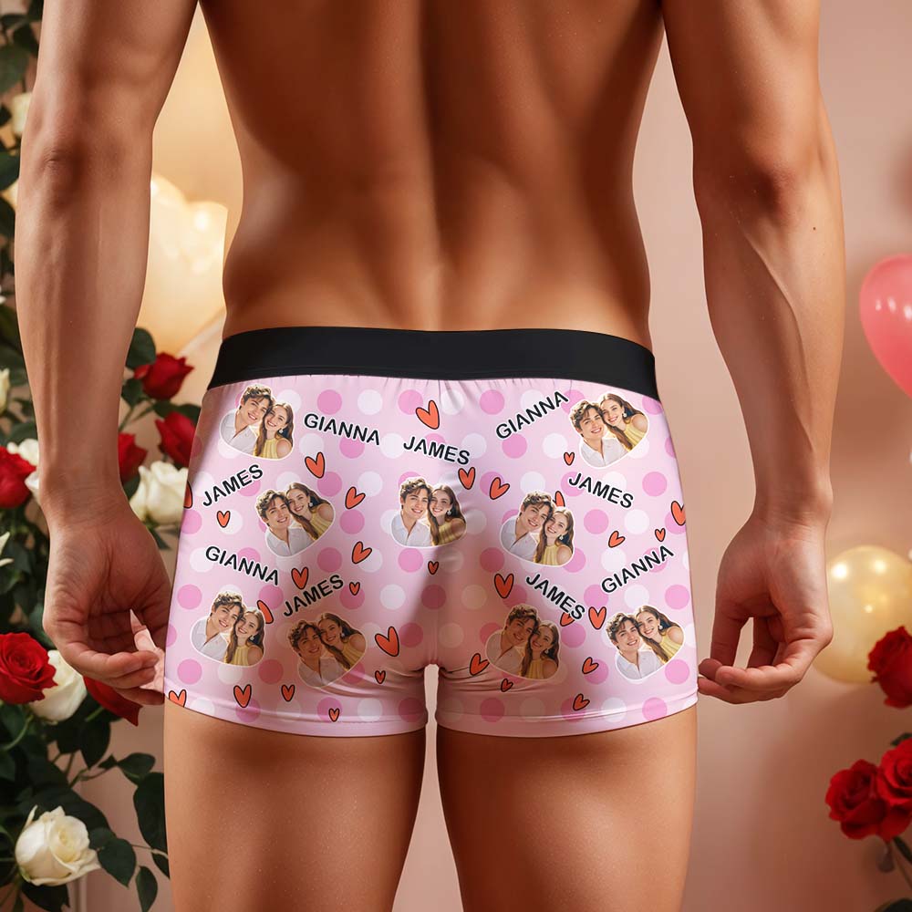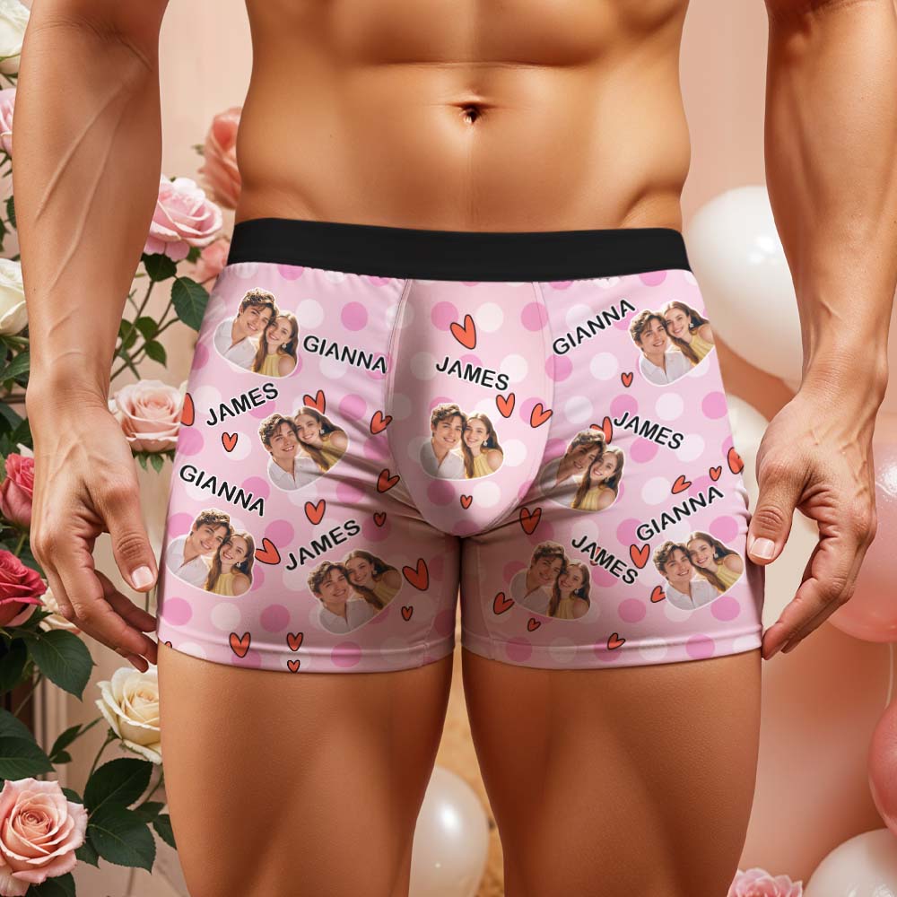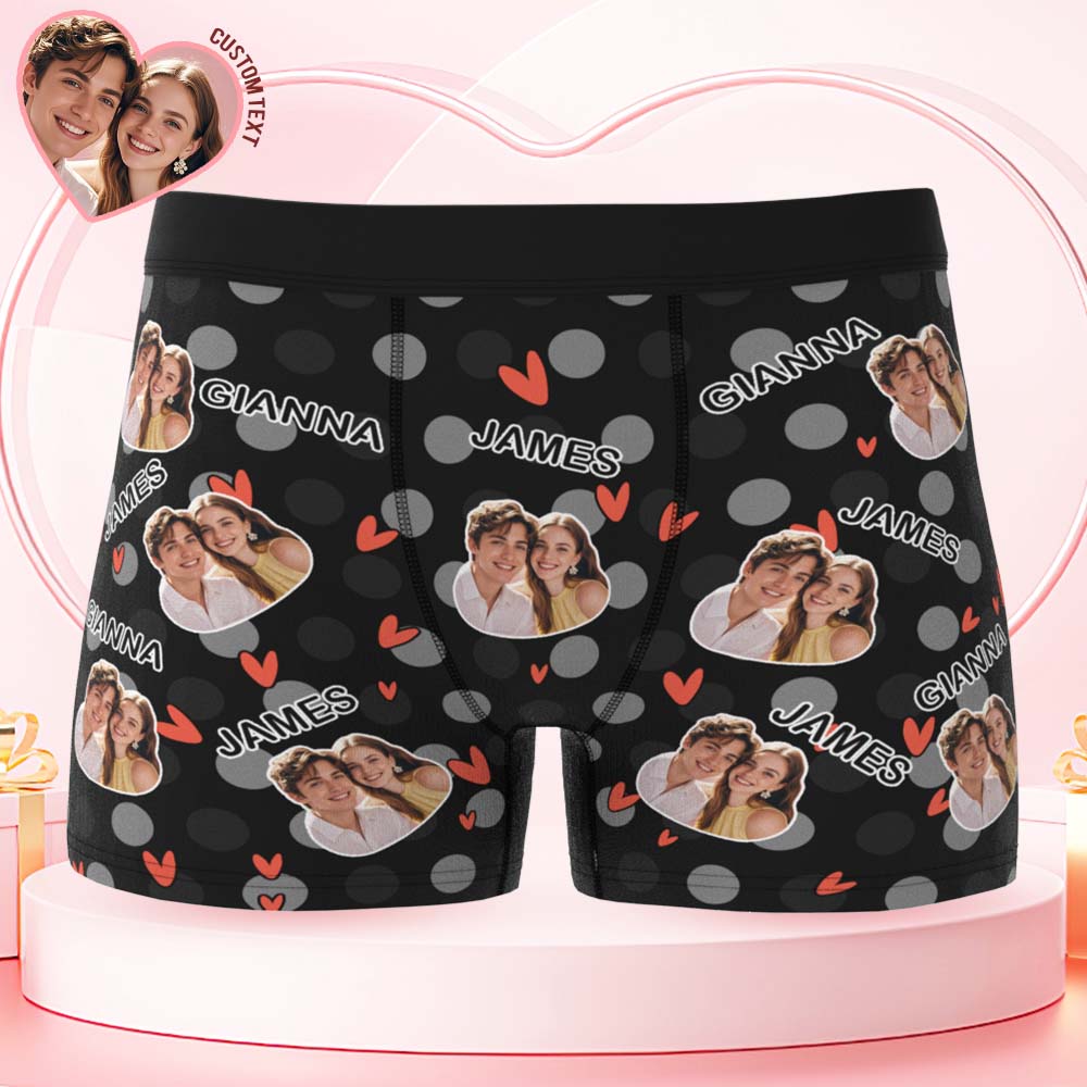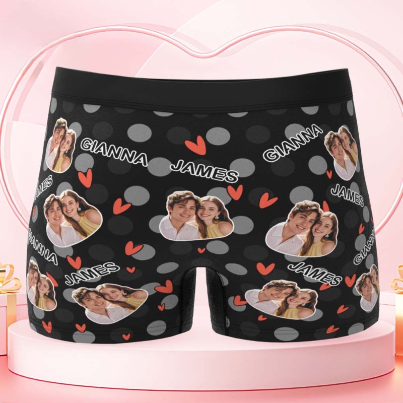 Custom Men's Boxer Shorts Personalized Multicolor Heart Dot Photo Brief Boxer with Name Valentine's Day Gift